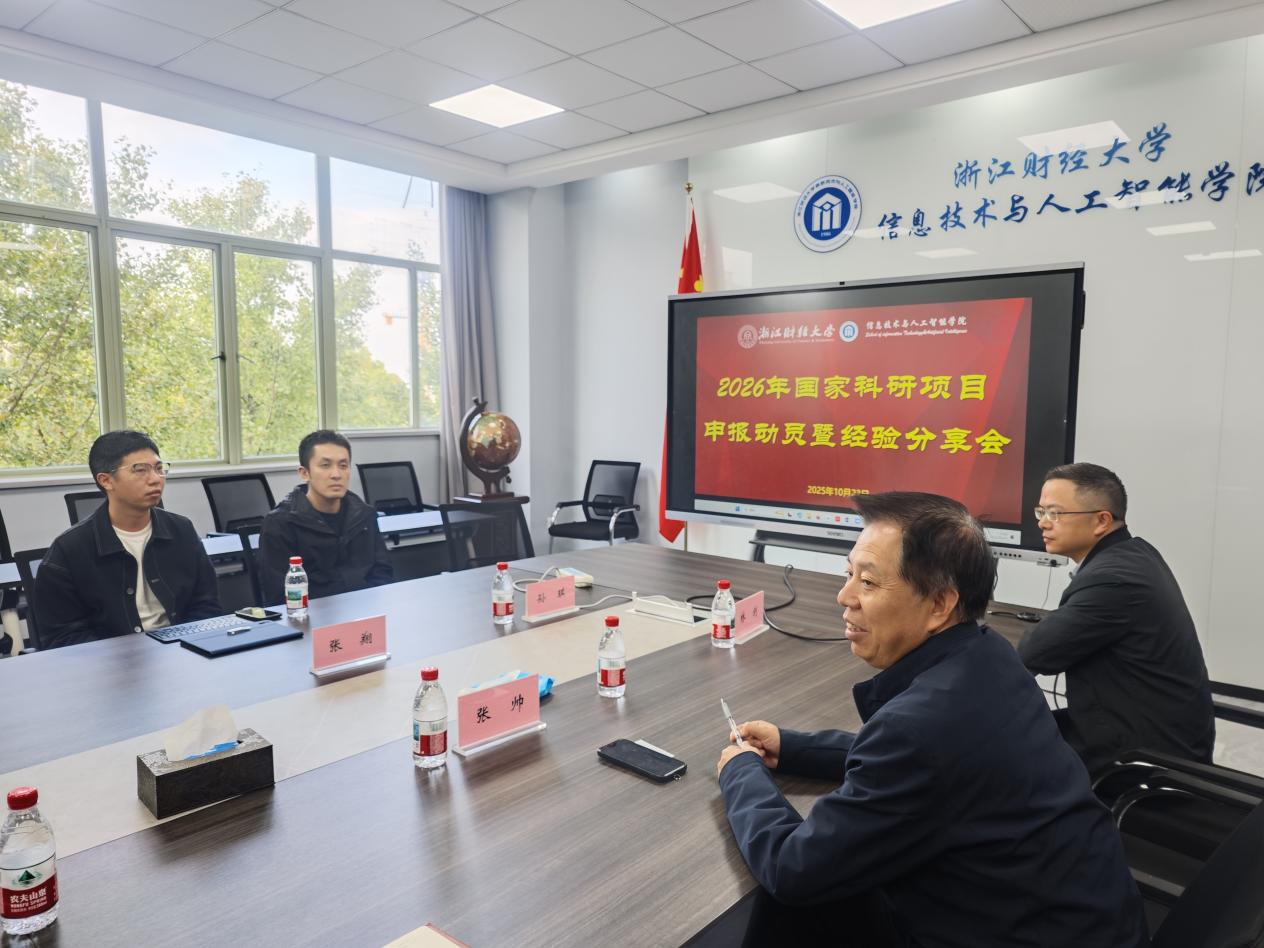 楼404会议室举行2026年国家科研项目申报动员暨经验分享会。学院院长张帅教授作申报动员演讲,立项国家级课题的青年教师张翔博士、特邀管理学院孙琪博士为H次元