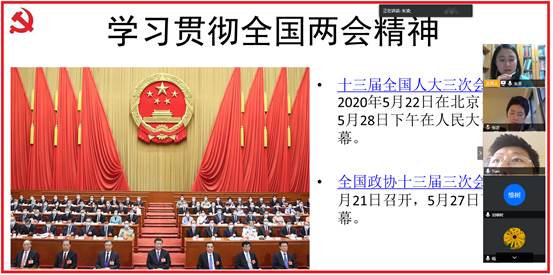 会上,党员老师们认真学习了2020年5月22日在北京召开的十三届全国人大三次会议和5月21日召开的全国政协十三届三次会议的主要议程与政府工作报告,对两会热点、看点及知识点等重要内容进行了热议,并深入解读了两会精神。