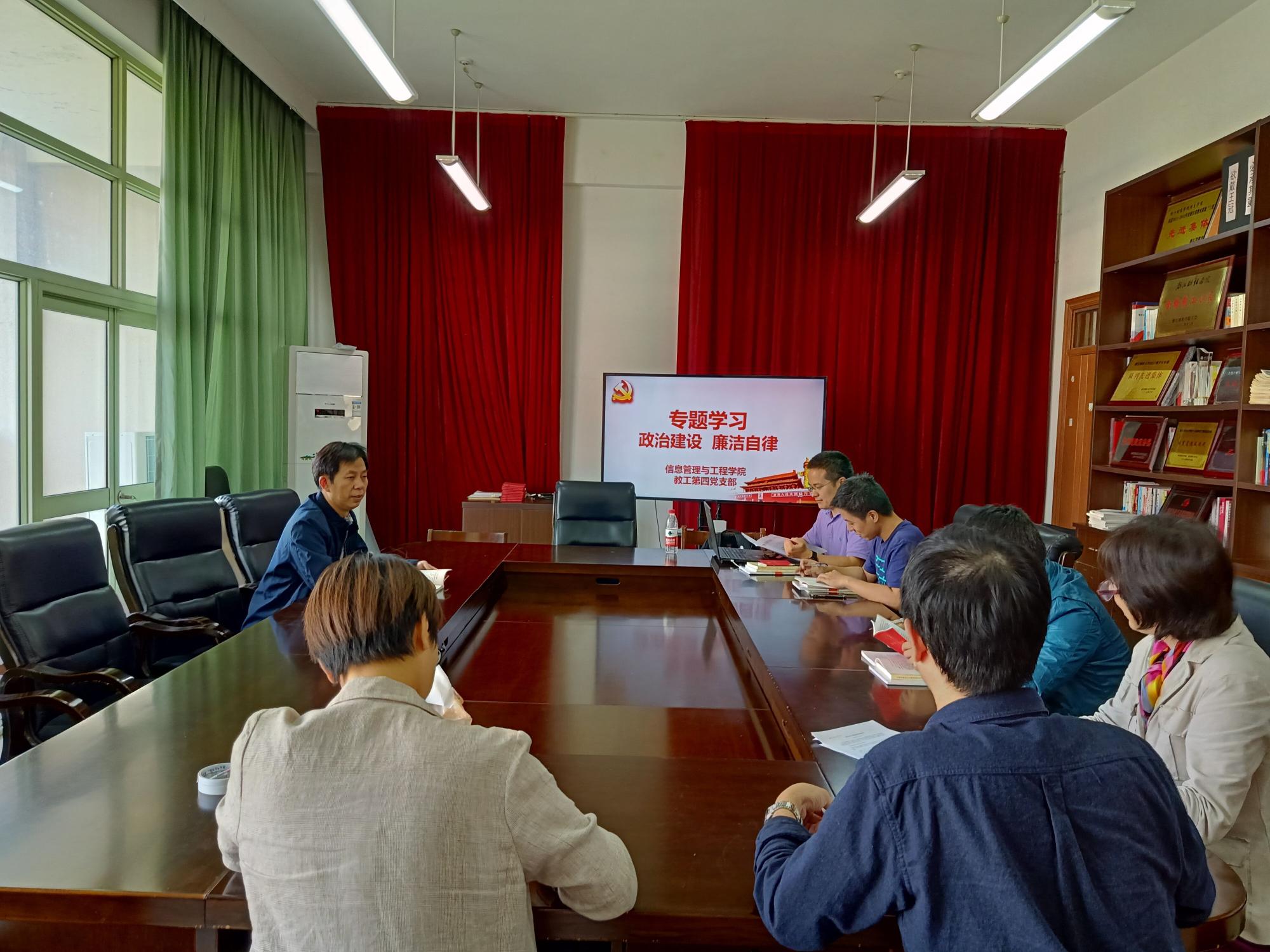 1015日,教工第四党支部在9506会议室召开专题学习会,围绕政治建设和廉洁自律两个专题开展集中学习研讨,支部全体党员参加了专题学习会。