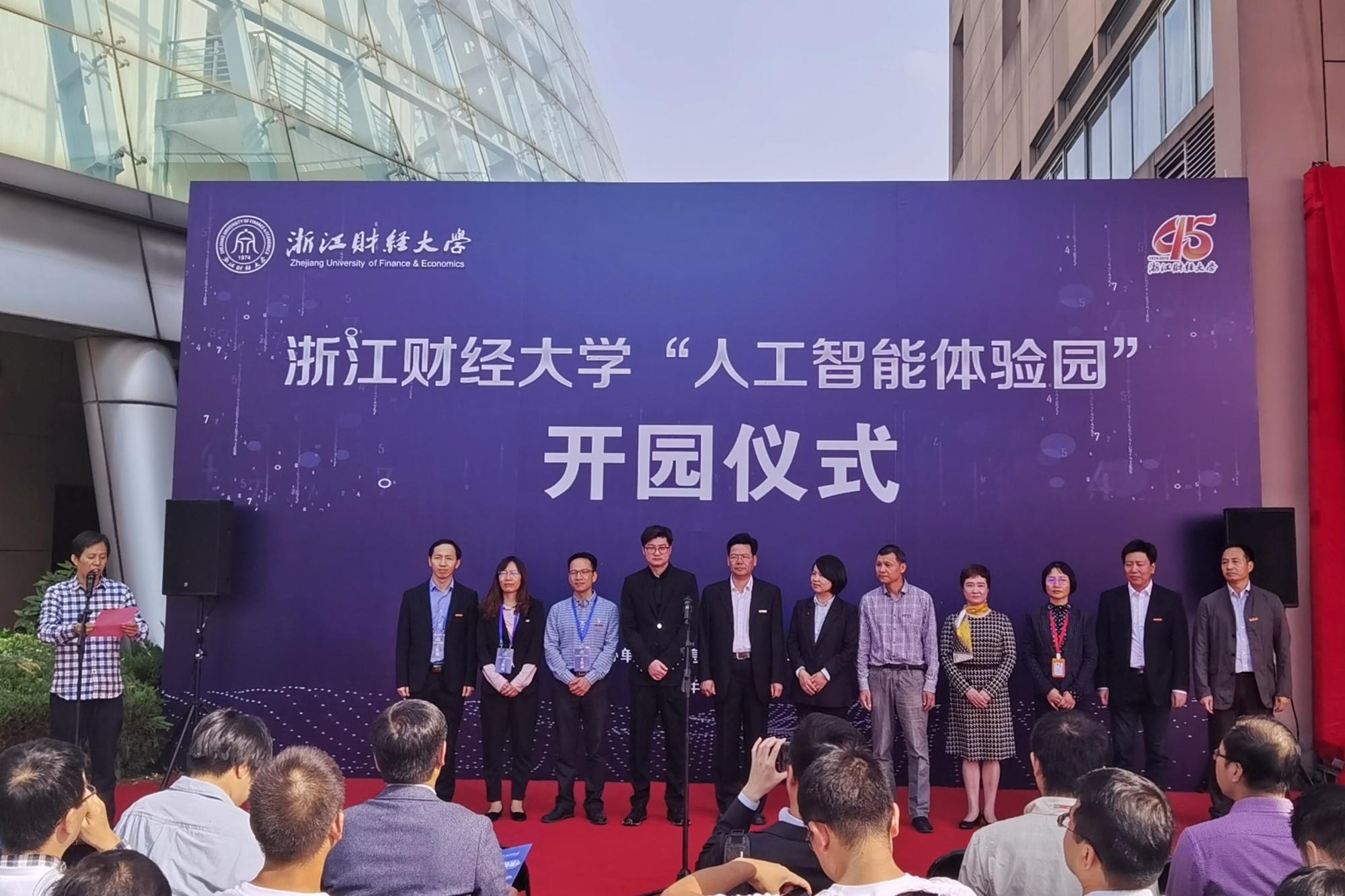 随后,与会领导嘉宾共同为人工智能体验园揭幕。揭幕仪式后,现场嘉宾们下在工作人员的带领下,有序入园参观,依次体验了语音识别、视屏融合、人脸融合、可视化神经网络、VRMr体验区4.0智慧工厂,alpha go介绍和智慧学习等模块。参观中,励如孟副校长表达了他对人工智能体验园的诚挚祝福与殷切期盼,认为这是推动人工智能理念在青年学生中传播的有效途径,全校学生应当有效利用体验园资源,提升自身的科学素养,跟上时代发展的节奏,做新时代的浙财人。