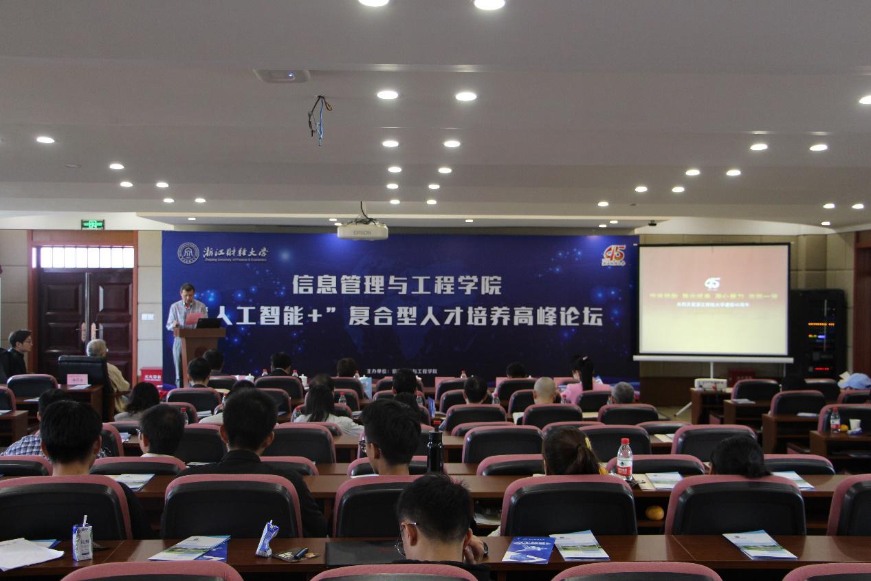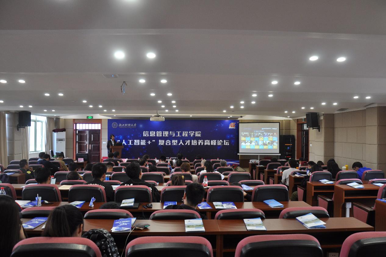 信息管理与工程学院举办 “人工智能+”复合型人才培养高峰论坛。信工学院院长张文宇、信工学院原党委书记冯睿、浙江财经教务处副处长石向荣、信工学院副院长张帅、杭州遥望网络股份有限公司CEO谢如栋、达内教育集团院校事业部总经理周慧、知名学者张真诚教授等参加本次论坛。论坛由信工学院学科带头人张志强主持。