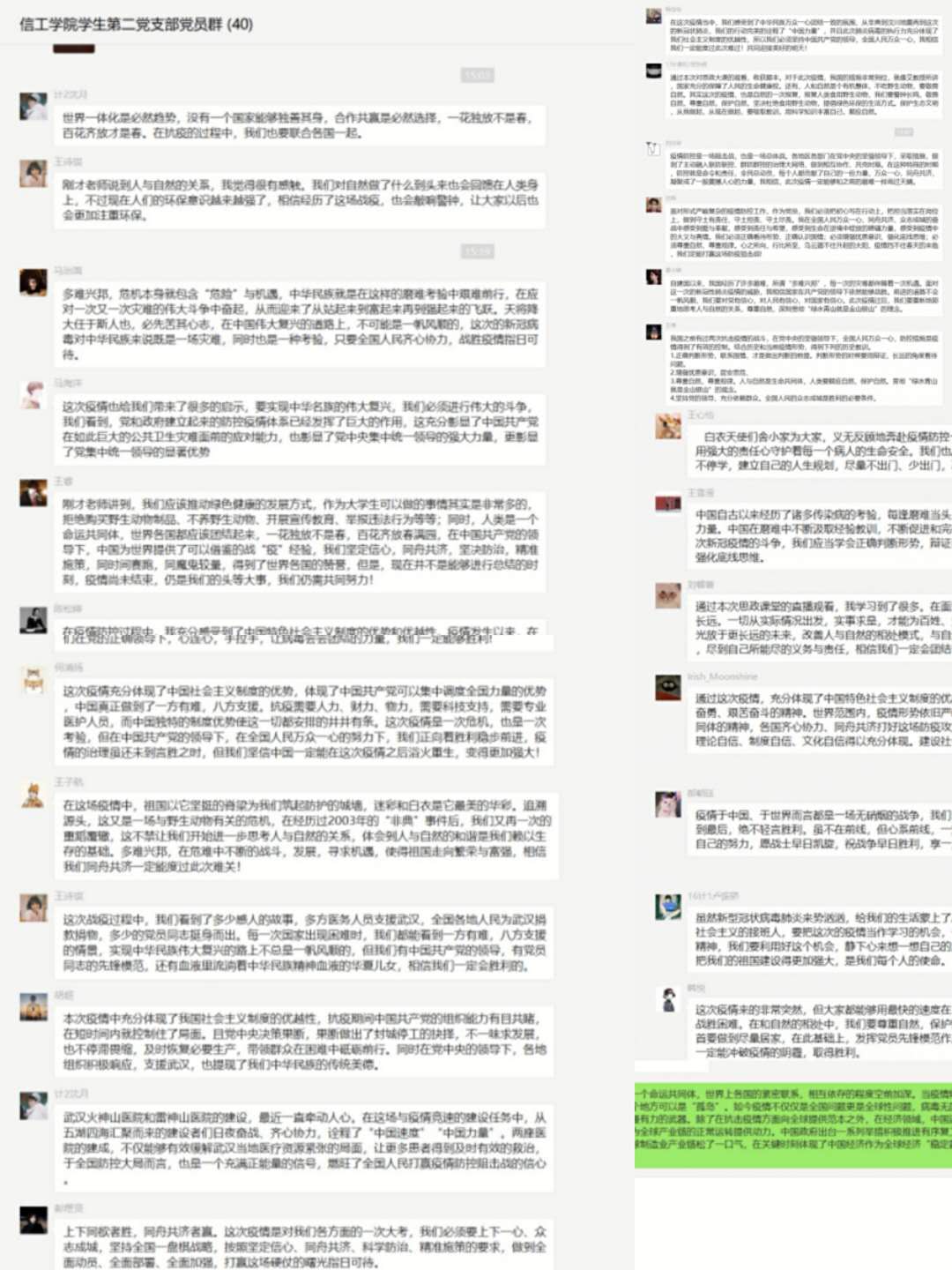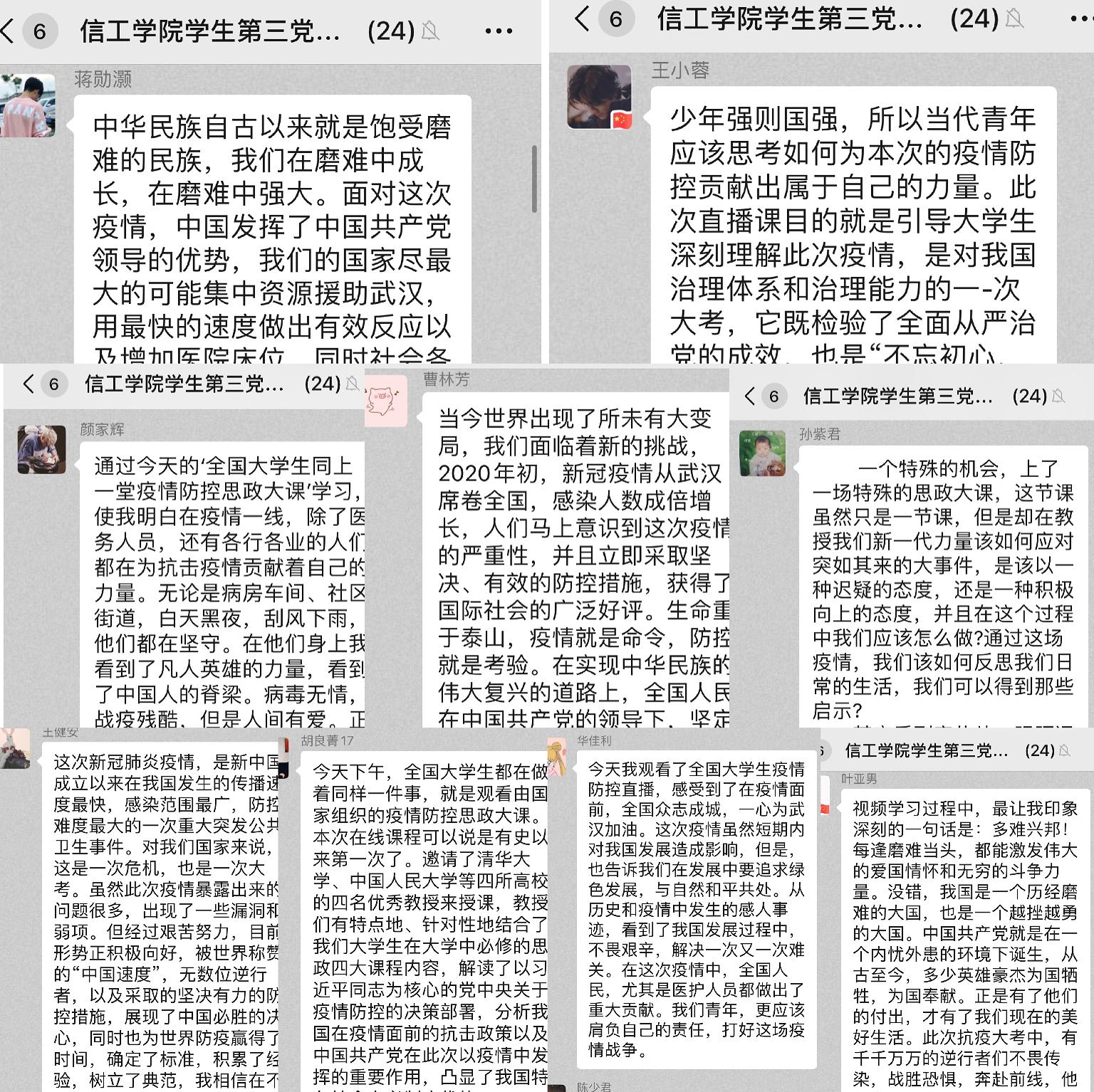 直播结束后,为了让党员学在前列,做在前列,学院各学生党支部书记带头,组织党员开展线上交流讨论进一步深化学习成效。