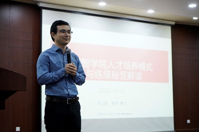 10月13日下午,为帮助20级新生了解大学学习要求和学校学分制培养方案,由院党委副书记田聪主持、副院长陈远高主讲的新生学分制培养方案解读会在学术第一报告厅举行。陈远高副院长介绍H次元