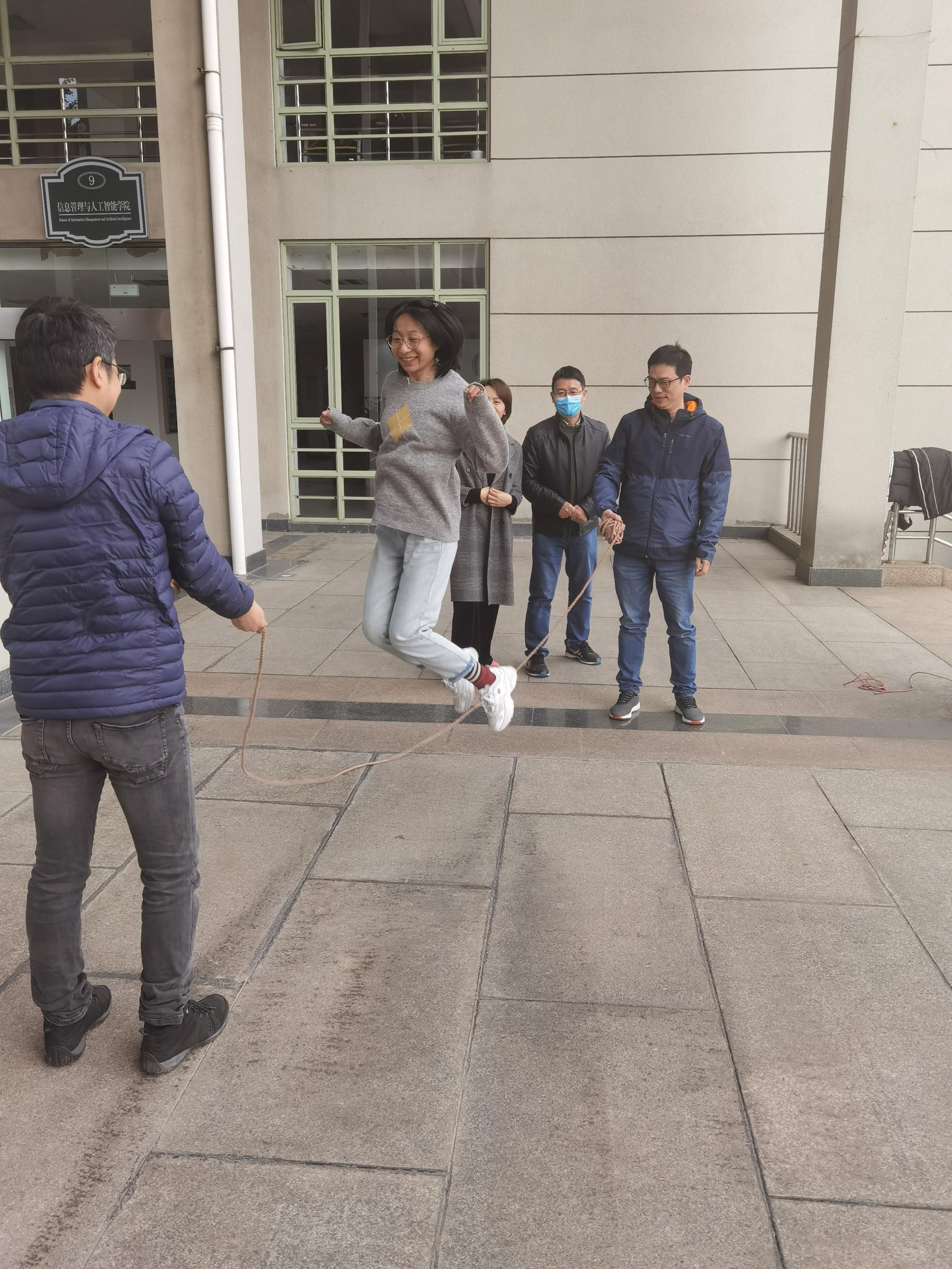H次元 分院分工会于11月10日举办教工全民“链”跳绳活动,各系部办积极发动,组织教师报名参赛,一场绳舞飞扬的“链”跳绳活动拉开帷幕,长绳连跳中各系部办教师展现了精彩的配合,个个身手矫健飞速穿插。人小跳表演中,老师们拾回了少年绝技,进行多化样表演,引得众声喝彩。此次“链”跳绳活动的开展,老师们锻炼了身体,弘扬了体育精神,营造了体育运动的氛围。绳舞飞扬,链接你我!