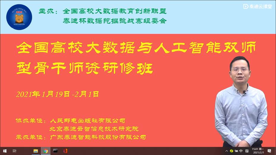 电子商务系陈明晶、王凌武参加了线上举办的全国高校大数据与人工智能双师型骨干师资研修班(2021年第一期),并顺利结业。