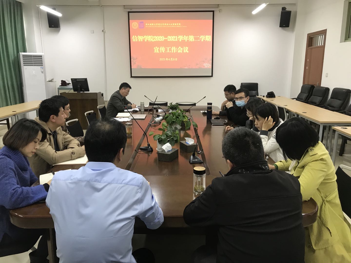 4月8日上午,学院召开了2020-2021学年第二学期宣传工作会议,学院党政领导班子、各办公室主任、各系主任和支部书记代表等参加会议,会议由实验中心主任章华主持。