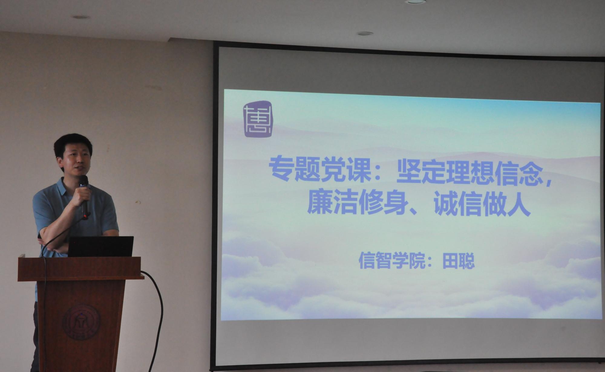 会上,田聪书记为全体毕业生上了一堂主题为“坚定理想信念,廉洁修身、诚信做人”的廉洁从业教育课。田书记提到,很多信智毕业生将来会在IT行业工作,整日与信息和数据打交道,更应该加强对信息安全的重视,在未来的工作和生活中时加强对敏感信息、重要信息的保密。秉持中国知识分子修身、治国、齐家、平天下的重任,做廉洁诚信的大学毕业生。