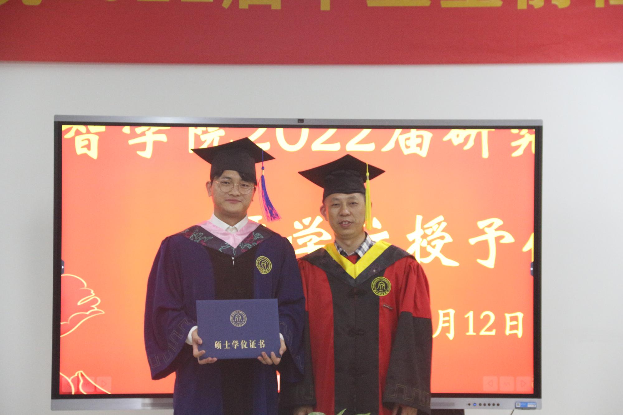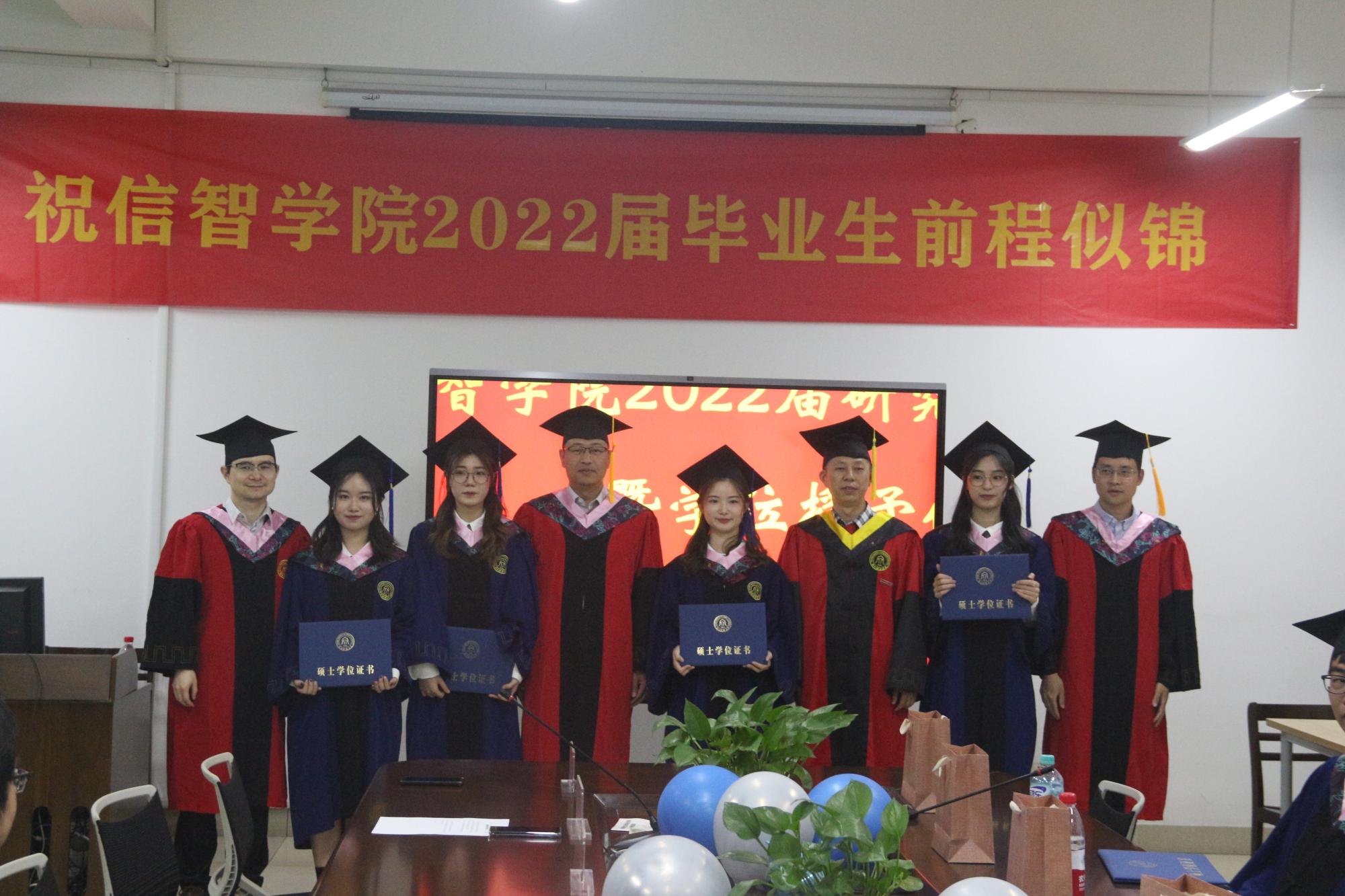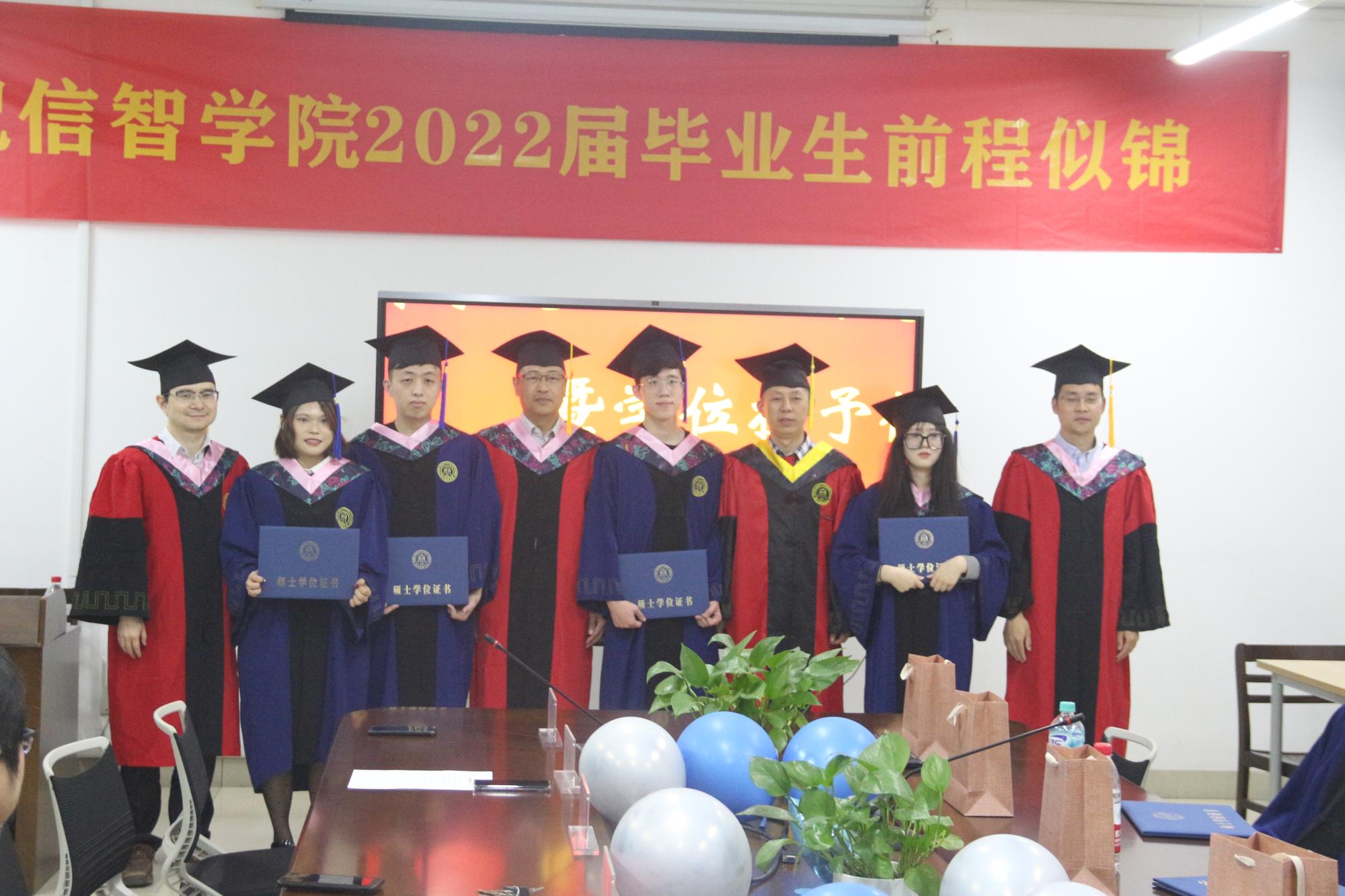 2022届研究生毕业典礼暨学位授予仪式在9号楼404会议室举行。学院领导班子、研究生辅导员、研究生秘书、导师代表、2022届研究生出席仪式。仪式由学院党委副书记田聪主持。