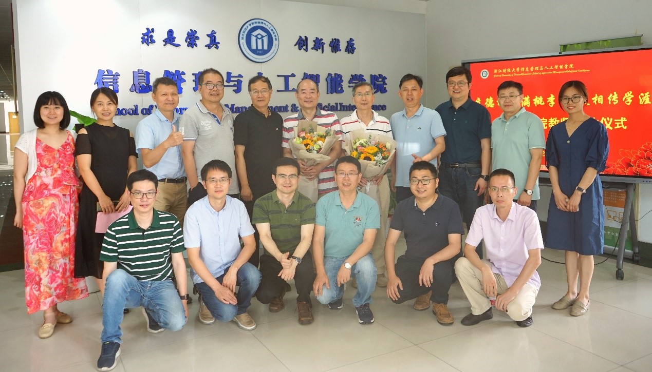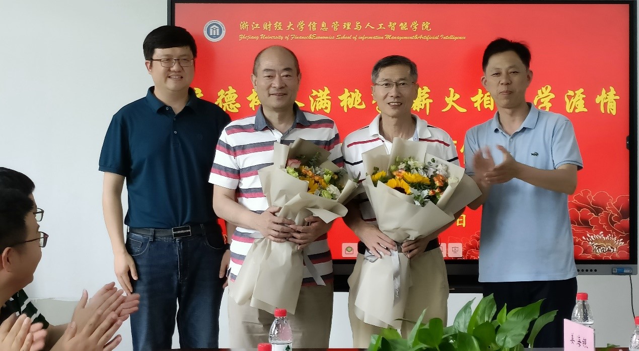 在9404会议室举行以“立德树人满桃李,薪火相传学涯情”为主题的教职工荣休仪式。仪式由学院工会主席章华主持,荣休教师赵辉、林锋,学院领导班子、教师代表参加了仪式。