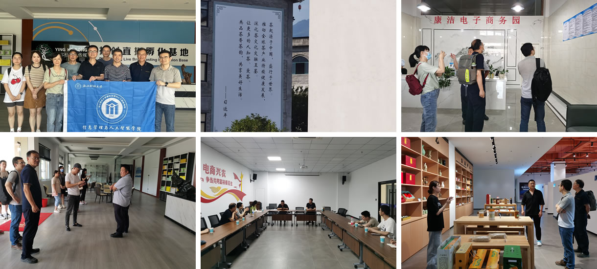 服务团首先来到了松阳县,考察了松阳县康洁电子商务园,这是一家以本地茶叶和自主品牌女装销售为主的电商园区,为了避免茶叶销售的季节性限制,园区企业一方面联合建造了大型茶叶冷藏库以延长茶叶的保存期,另一方面通过运营自主品牌女装来保持业务的持续性,取得了非常好的效果。服务团与园区主要负责人进行了座谈,听取了当地农产品销售、女装设计、电商人才培训和政策扶持等情况的介绍,并就电商运营、物流配送等方面进行了深度交流和探讨,在特色农产品品牌打造、直播电商引入等方面提供了多项建议。随后,服务团一行人参观了迎客松文化传媒旗下的抖创直播孵化基地,了解了本地主播的诞生过程,并且走进直播间,现场体验了直播的氛围。服务团还来到了松阳县电子商务公共服务中心,参观了祥瑞创客产业园,与相关负责人座谈交流,了解松阳县电商和园区近几年的发展情况,就直播人才培训、品牌设计、农产品供应链等关键问题给出了发展建议。松阳县坚定不移地将发展电子商务作为“一把手”工程,连续出台利好政策,积极开展县乡、政企多层联动,创新电商产业孵化机制,吸引5000多人“回巢”从事电商创业,培育电子商务企业(网店)2000余家,带动就业10000余人,农产品网络零售问题位列丽水市第一。同时有效的解决了农村空巢老人、留守儿童的赡养、教育等社会问题,为其它欠发达地区提供了很好的样板。
