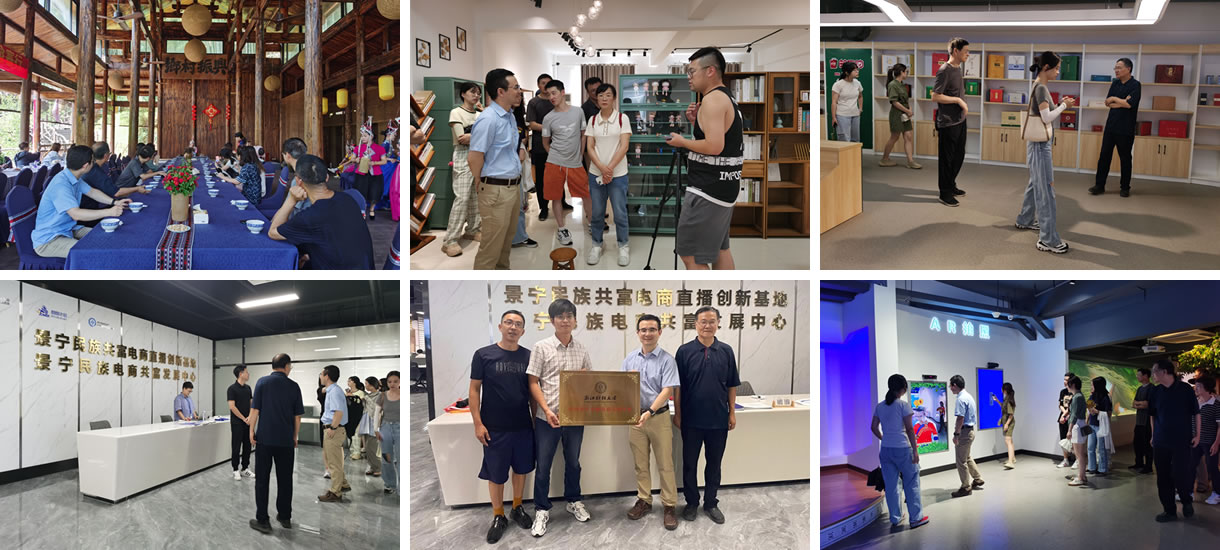 之后,服务团先后考察了景宁县大均乡的“中国畲乡之窗”和鹤溪镇东弄村的畲家田园综合体,在畲族阿妹的带领下感受了独特的少数民族风情,并详细了解了畲乡“农旅+电商+商贸”的运营模式,正是在这种创新的模式之下,乡、村集体经济得到了蓬勃的发展,同时,田园综合体的运营也直接带动了周边农家乐、民宿等产业的发展,创造了景区工作人员、演职人员、讲解员等一批新的就业岗位,解决了村民的就业问题,为村民收入的增收提供了新保障。为进一步了解景宁县整体电商产业的发展,下午服务团还参观了景宁数字文创电子商务产业园,与园区的负责人、入驻企业负责人进行了深入的交流。服务团还来到景宁“600”综合服务中心,参观景宁特色农产品展销中心、畲乡助农直播间和畲乡文创产品展示中心,通过景宁民族电商共富发展中心工作人员的介绍,了解景宁电子商务发展情况,并举行了“H次元