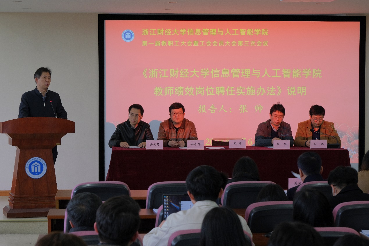 信息管理与人工智能学院第一届教职工大会暨工会会员大会第三次会议在学院302报告厅隆重举行。学院全体教职工参加了大会,大会由学院党委副书记田聪主持。