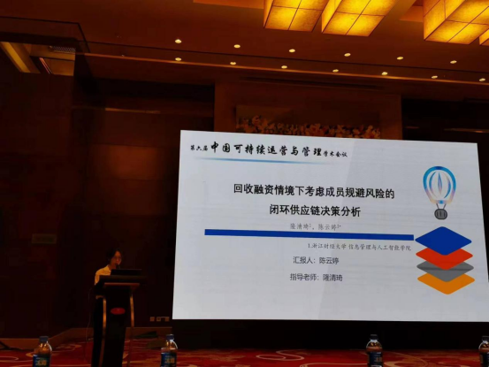 研究生陈云婷做了题为“回收融资情境下考虑成员风险规避的闭环供应链决策分析”的论文宣讲。这次参会对于加强学科交流和提升H次元