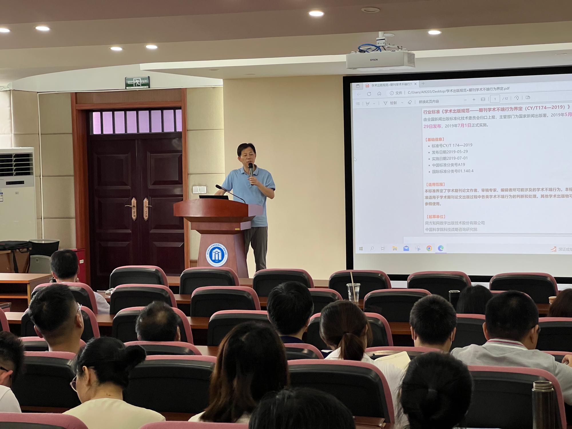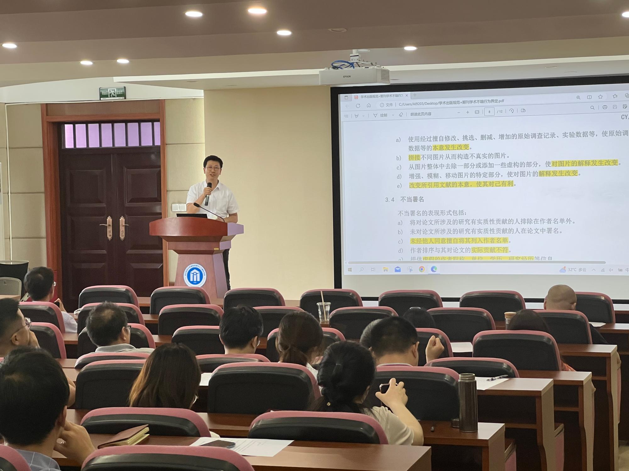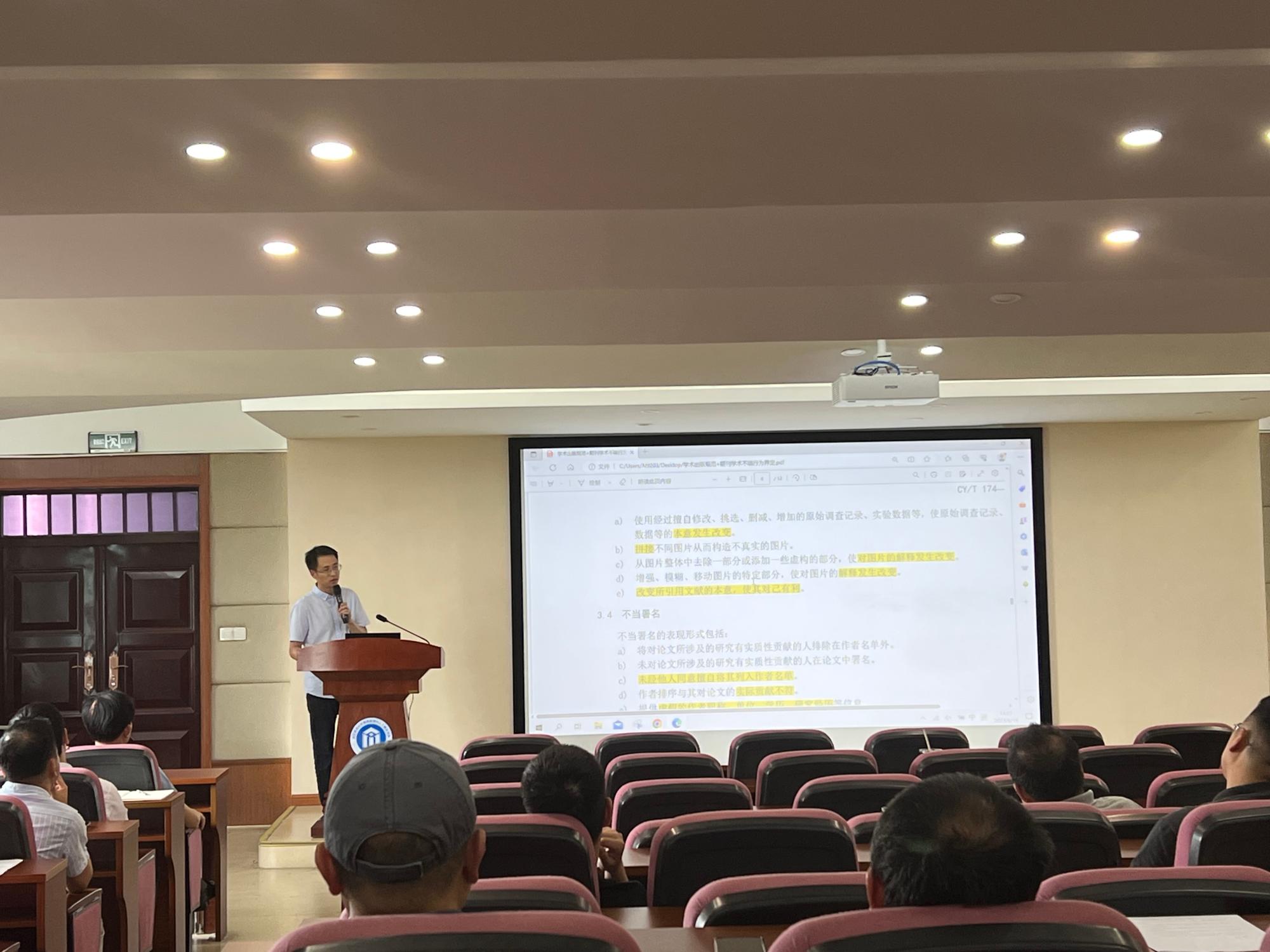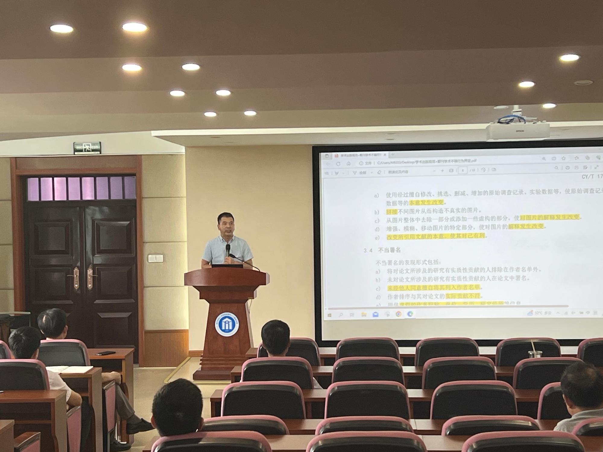 隆清琦副院长传达上级主管部门关于学术不端的相关会议精神,汇报了研究生升学情况与就业情况。