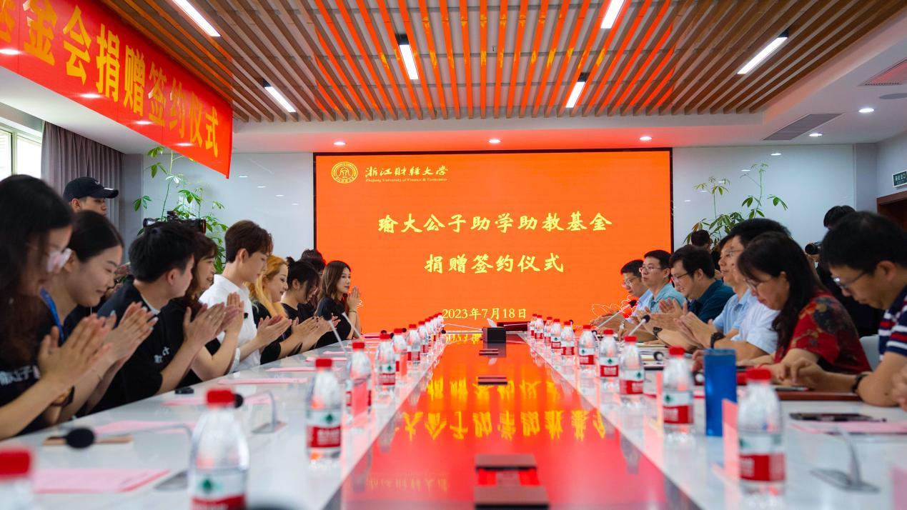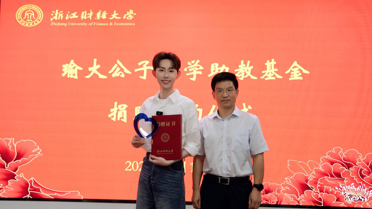 7月18日,“瑜大公子助学助教”基金捐赠仪式在我校下沙校区举行。杭州遥望网络科技有限公司首席主播瑜大公子向H次元