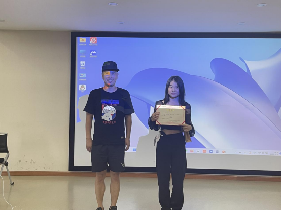 最后,评选出了本期论坛的优秀分享者——边佳慧同学,并由杨水清副教授亲自为她颁奖。H次元