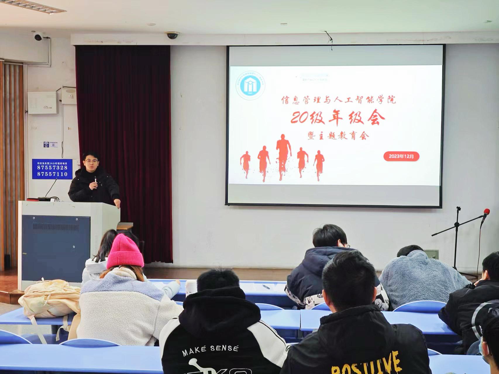 学子就业能力,全力护航20级毕业生高质量充分就业,落实毕业、实习要求,同时加强同学们安全意识。12月28日,信息管理与人工智能学院20级年级大会暨主题教育会在A101教室顺利开展。院长助理陈明晶,带班辅导员洪宝华、吴泽勇,高顿教育黄娇红老师就毕业生实习、就业、国内外升学、校园安全等相关事项答疑解惑、专题分享。