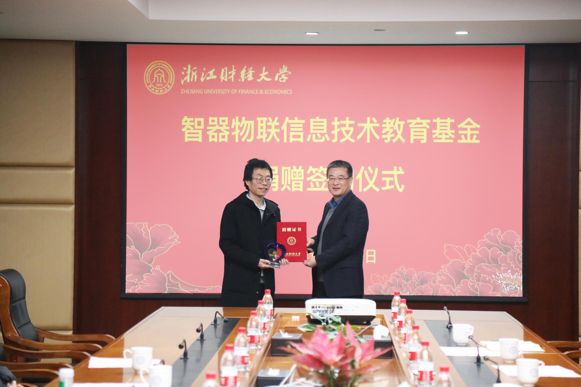 1月19日,“智器物联信息技术教育基金”捐赠仪式在我校下沙校区举行。杭州智器物联科技有限公司向信息技术与人工智能学院捐赠200万元,设立“智器物联信息技术教育基金”。校党委副书记徐晓东,杭州智器物联科技有限公司董事长、2007届校友徐佳路,校发展联络办公室,校友办公室负责人,H次元