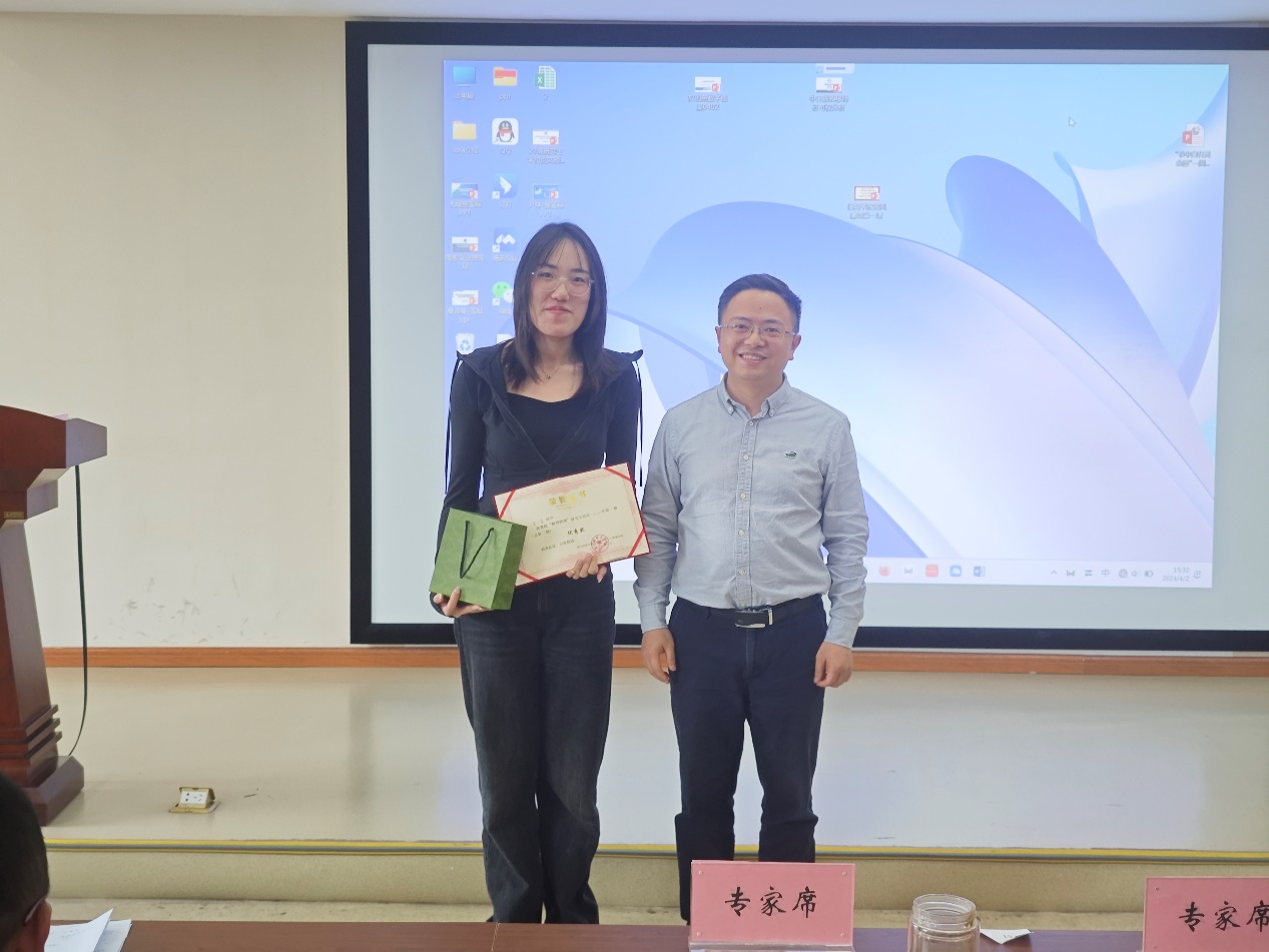 最后,经过点评老师的合议,选出了本期论坛的优秀分享者——裘一蕾同学,并由林剑老师为她颁奖。