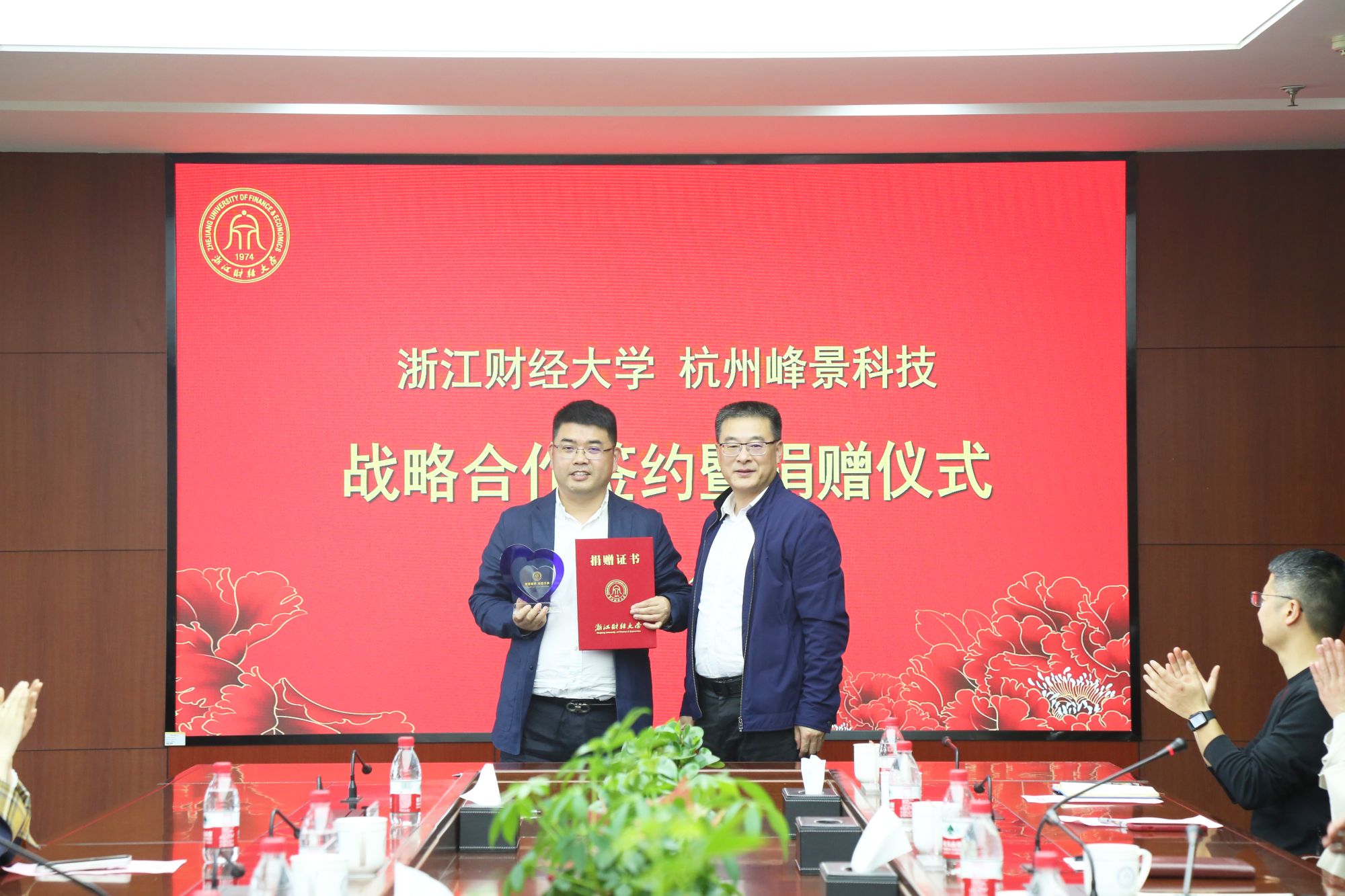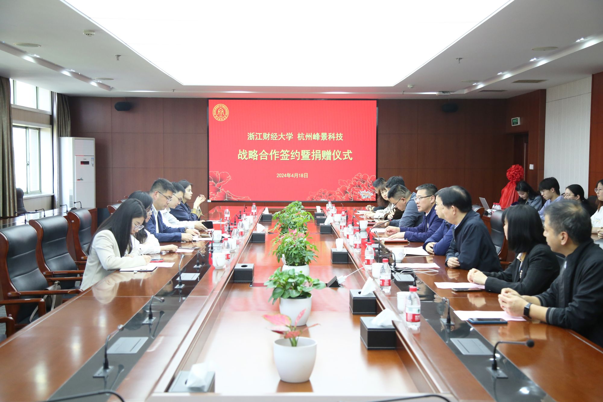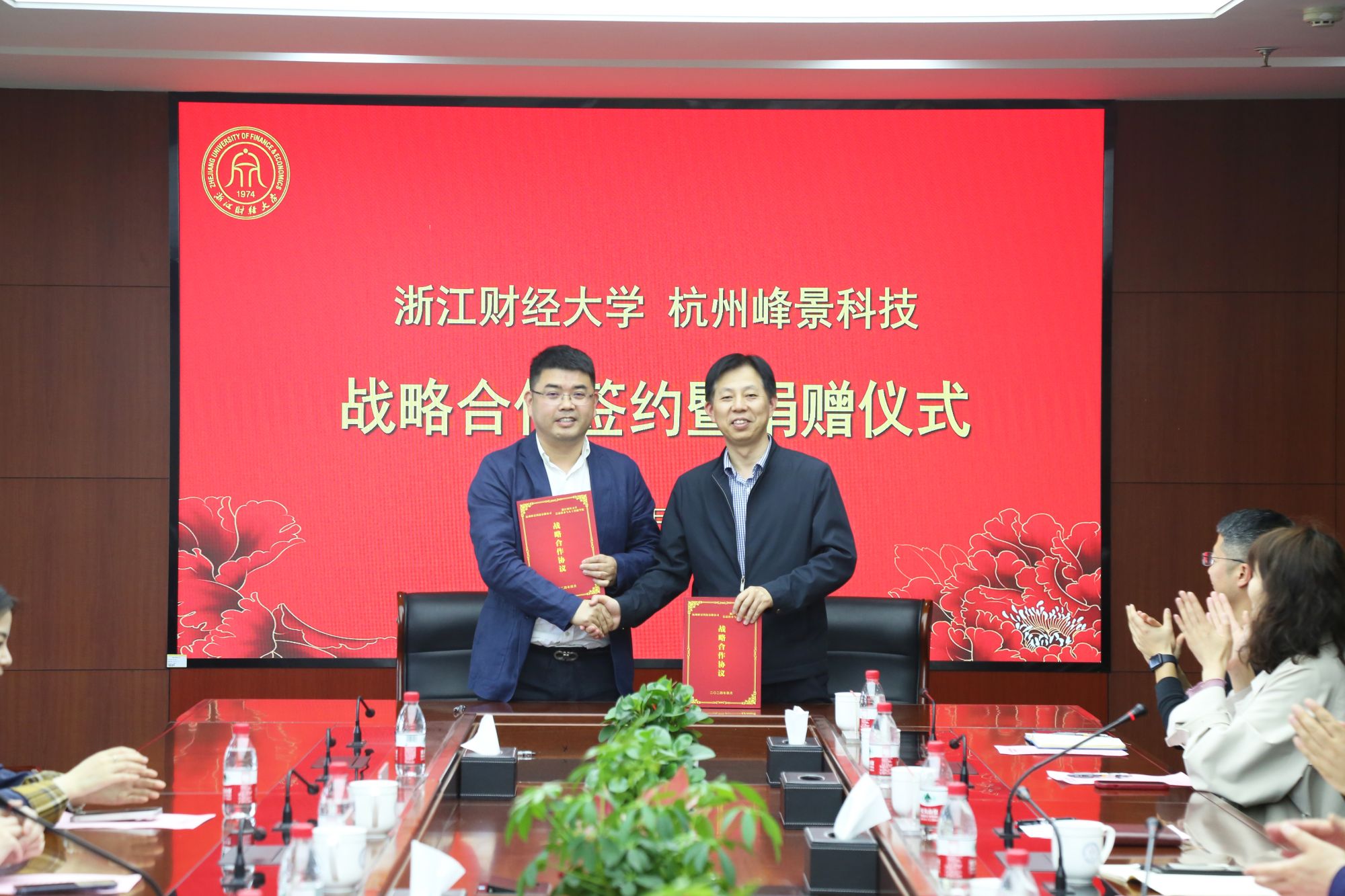 与杭州峰景科技有限公司战略合作签约暨“峰景科技教育基金”捐赠仪式在行政楼412成功举行。峰景科技有限公司在信息技术与人工智能学院设立“峰景科技教育基金”,共建“人工智能创新中心”。校党委副书记徐晓东、峰景科技有限公司董事长周金满、总裁沈忱、副总裁余艳、董事长助理戴旭笑、企宣主管周立君、校发展联络办公室主任吴玻、社会合作处副处长蒋云兵、信息技术与人工智能学院院长张帅、党委书记吴翼泽、副院长朱凌、党委副书记吴轶韵等代表出席签约仪式。