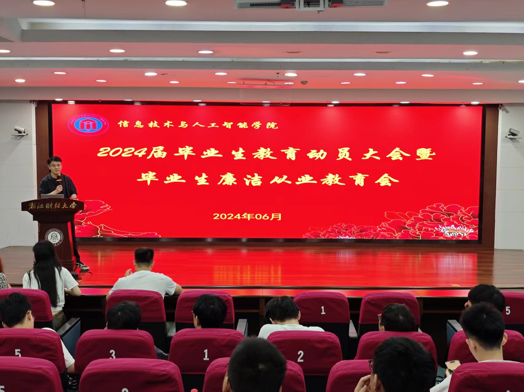 在2024年盛夏的热烈氛围中,“2024届毕业生教育动员大会暨毕业生廉洁从业教育会”成功召开。党委副书记吴轶韵、学办主任洪宝华、团委书记赵梦瑶、辅导员徐军军、史光花、吴泽勇与众多毕业生们共聚一堂,怀揣着梦想与激情,共同迈向人生的新篇章。