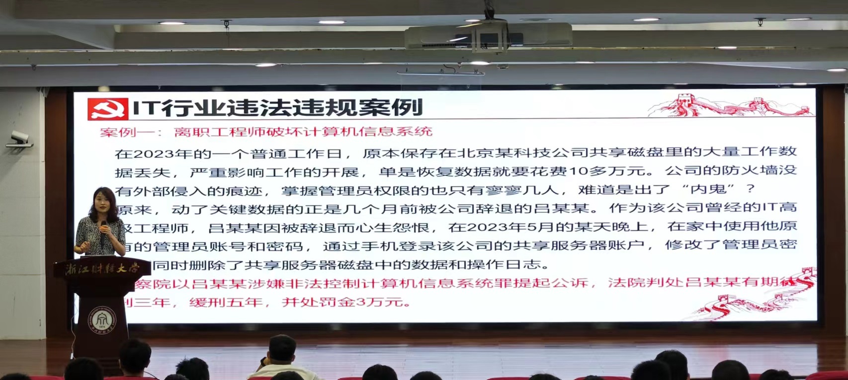 吴轶韵结合IT行业的实际情况,深入浅出地剖析了行业规范的重要性。她以一系列鲜活的违法违规案例为鉴,警示毕业生们要时刻保持清醒的头脑,坚守道德底线,不触碰法律的红线。她强调,廉洁从业不仅是每个从业者应尽的责任,更是对自己未来的最好投资。她的话语中透露出对毕业生们的殷殷期望和深深关爱。