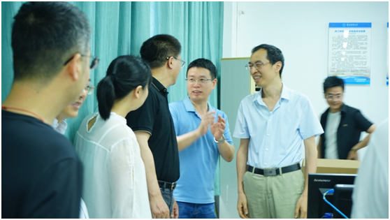 在走访过程中,魏江校长全面了解了学院在短学期专业实践项目的教学安排和实验室建设情况,听取了软件工程专业实践团队项目实训的部分小组汇报,并走进校企合作共建的专业实践项目《智能物联网数据采集系统设计与开发》课堂中,对课程实践情况进行了详细考察。他细致询问了学生的实验操作情况,并对参与课程的企业导师和校内专业导师表达了诚挚的感谢,慰问和肯定了他们在教学工作中的辛勤付出。同时,魏江校长鼓励学院要继续加强与国内外知名企业合作与交流,不断提升学院的学术影响力和社会声誉。