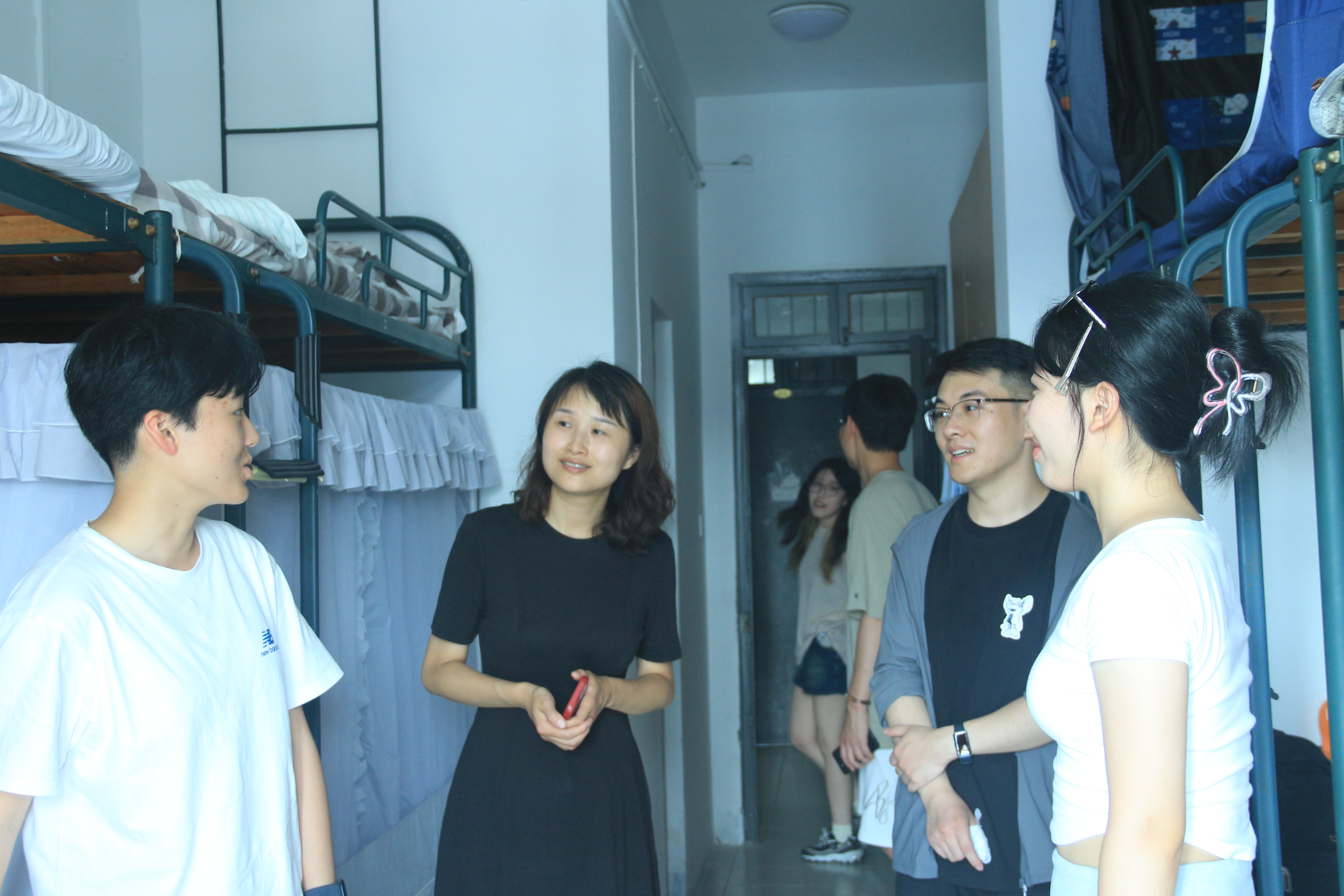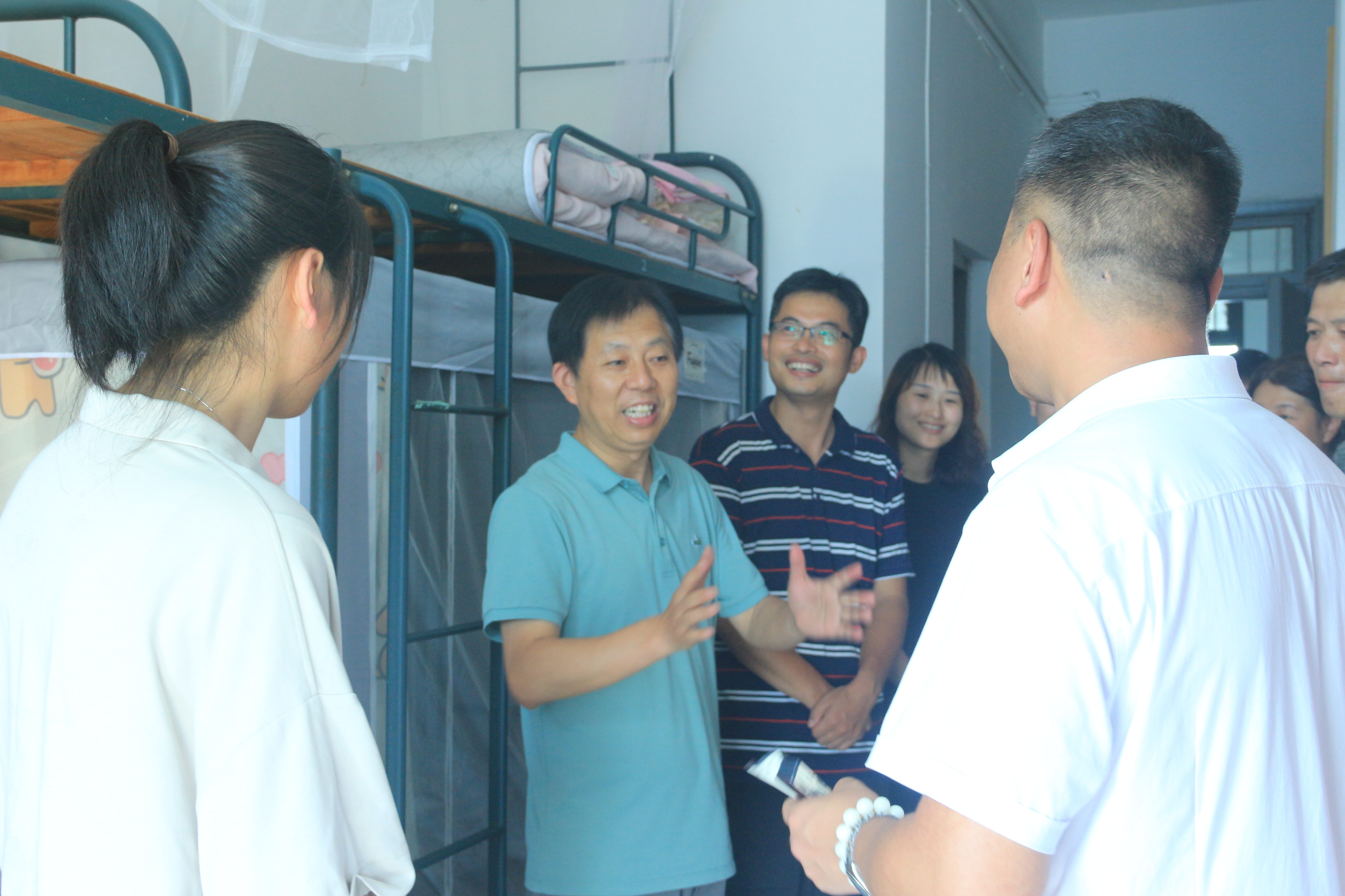 院长张帅、院党委书记吴翼泽、院党委副书记吴轶韵、院学办主任洪宝华及新生班导带队走访新生寝室。