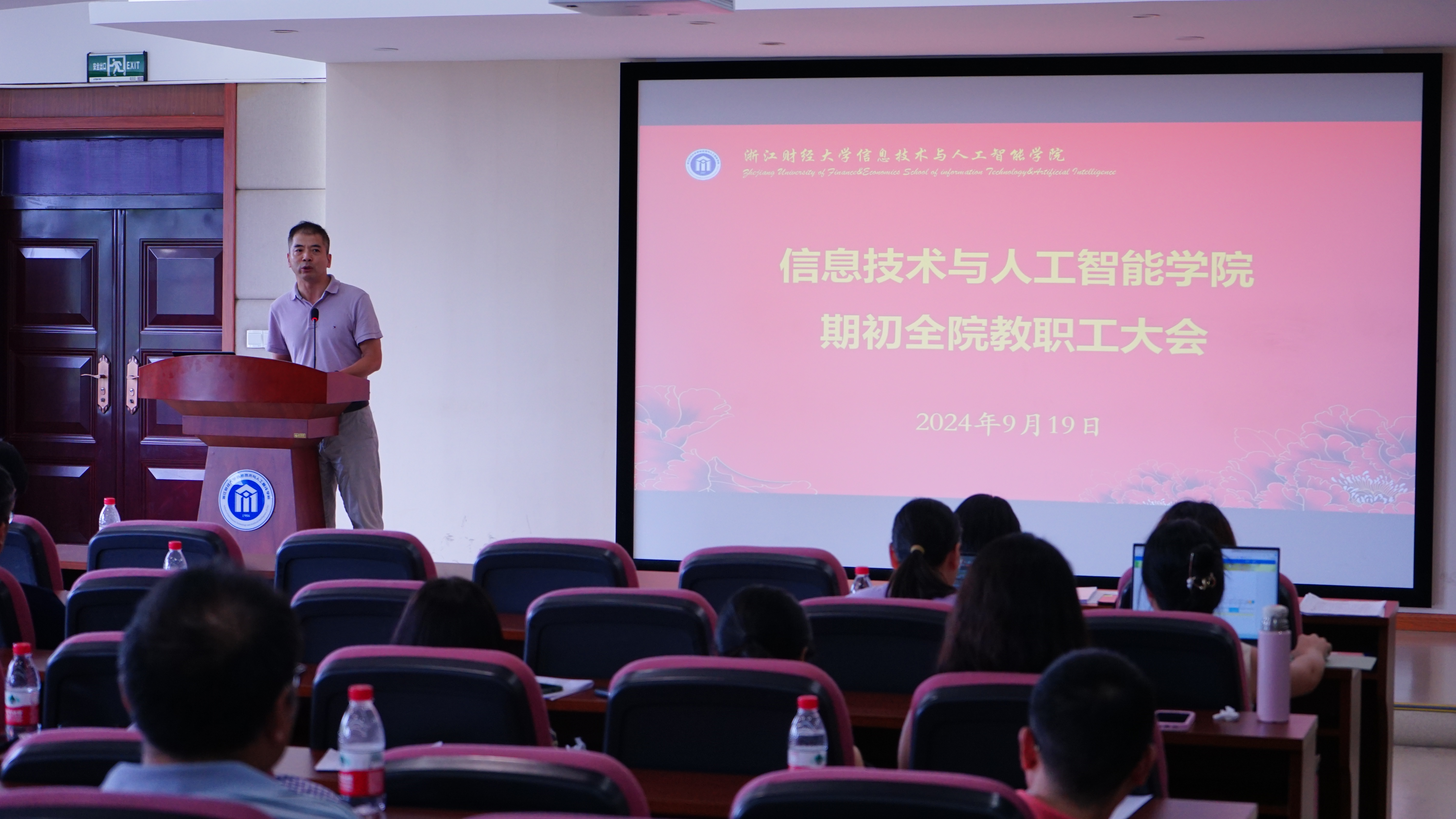 9月19日下午,学院在9-302报告厅召开期初全体教职工大会。会上学院领导们传达了校职能部门本学期相关事项,并对重要工作作出部署。