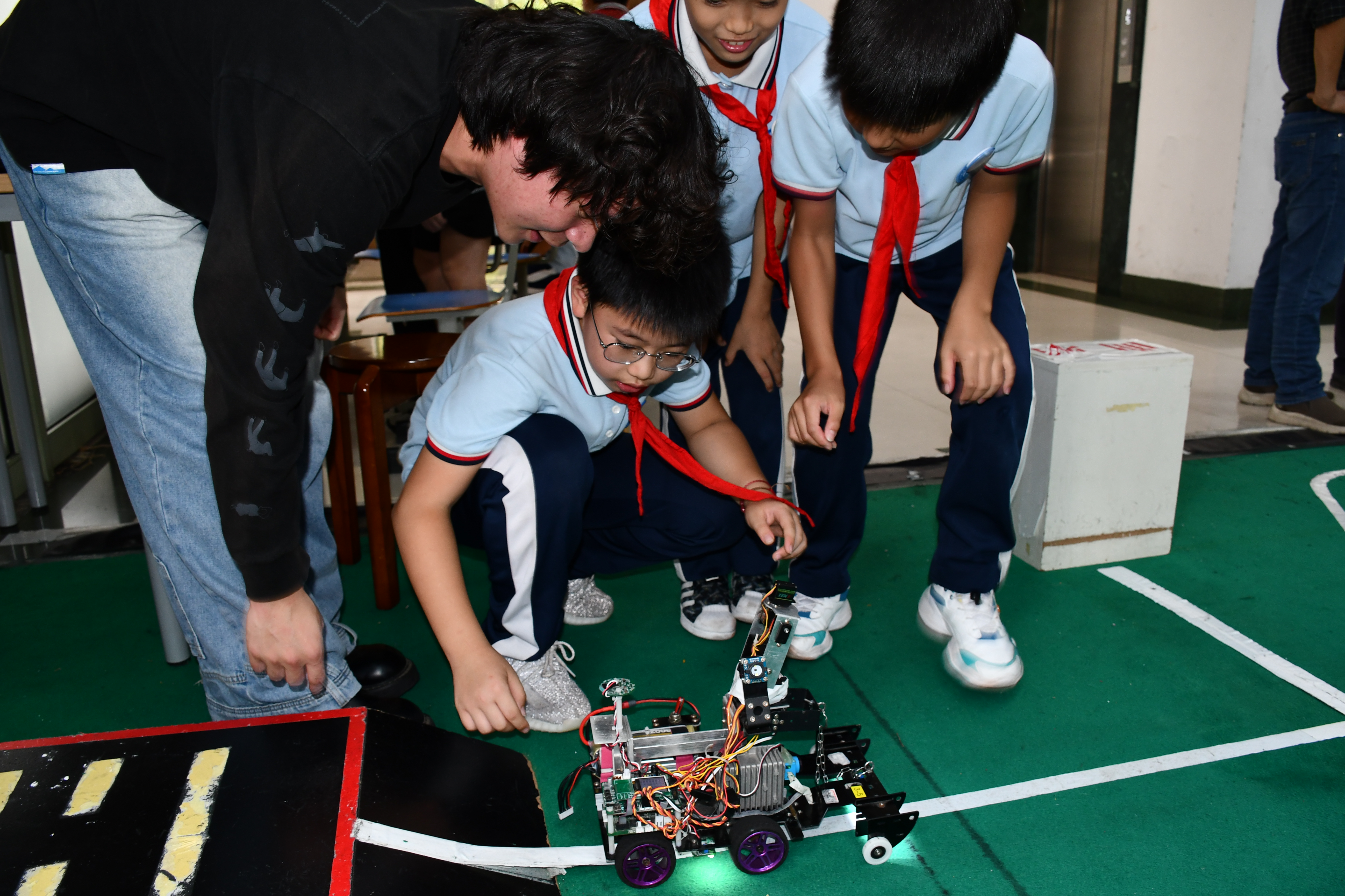 的机器人表演,学生们对机器人灵活的动作和智能表现产生了浓厚的兴趣,现场气氛热烈。