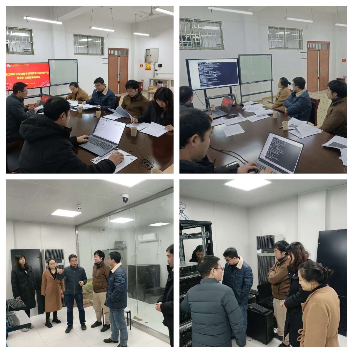验收会上,专家们听取了项目建设组成员和供应商的汇报,并实地检查了设备的安装和运行情况,查验了货物的数量、规格、性能指标与反向竞价采购文件的要求是否相符合。最后,履约验收小组认为深度学习算力群平台算力扩充升级项目达到预期效果,符合验收标准,一致同意项目通过验收。