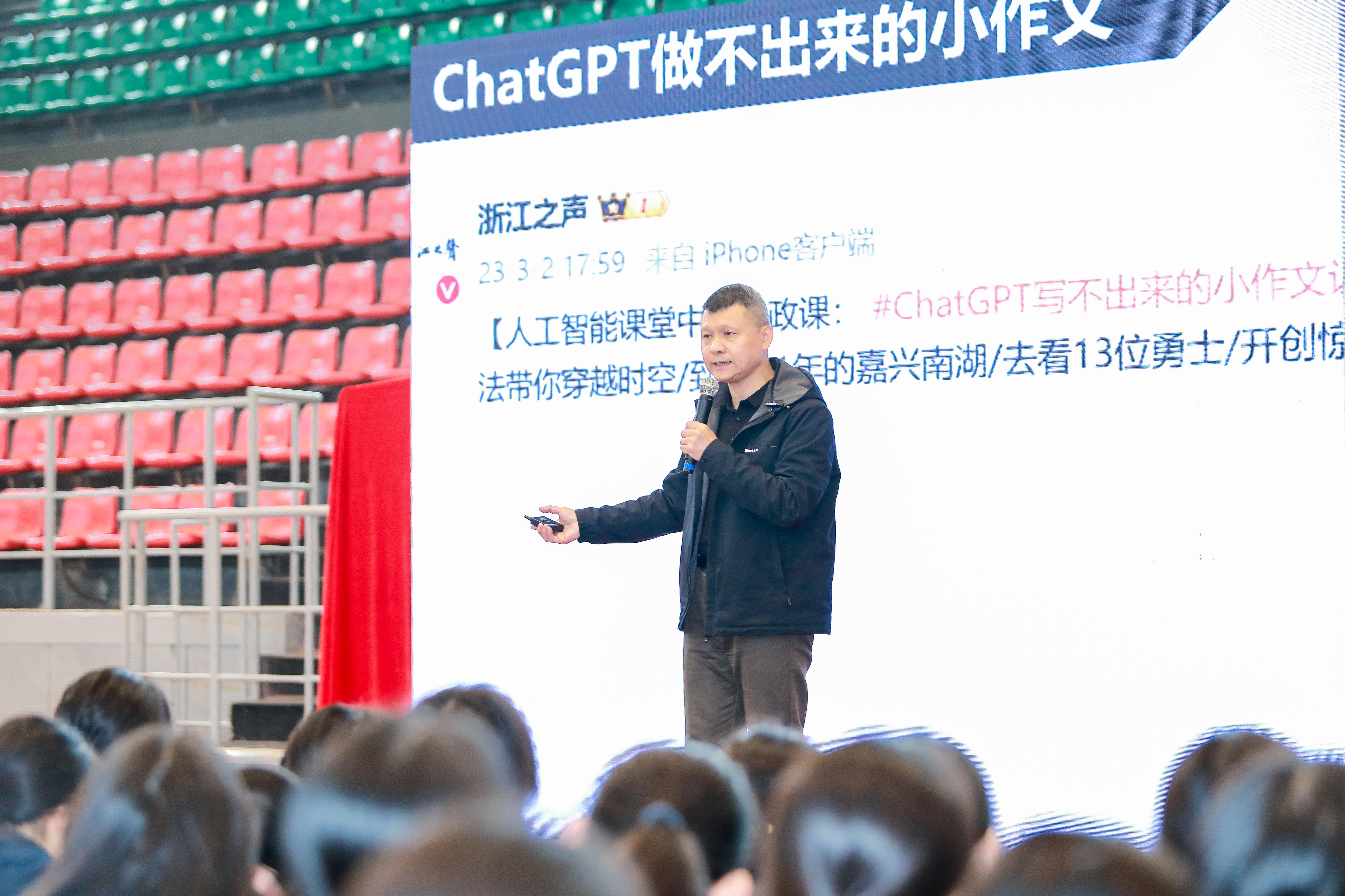 二级教授张文宇、人工智能研究院院长、杭州市青少年科技教育协会名誉理事长张文宇来到嘉兴市高级中学这样说:“AI时代,要做自己的哪吒”。