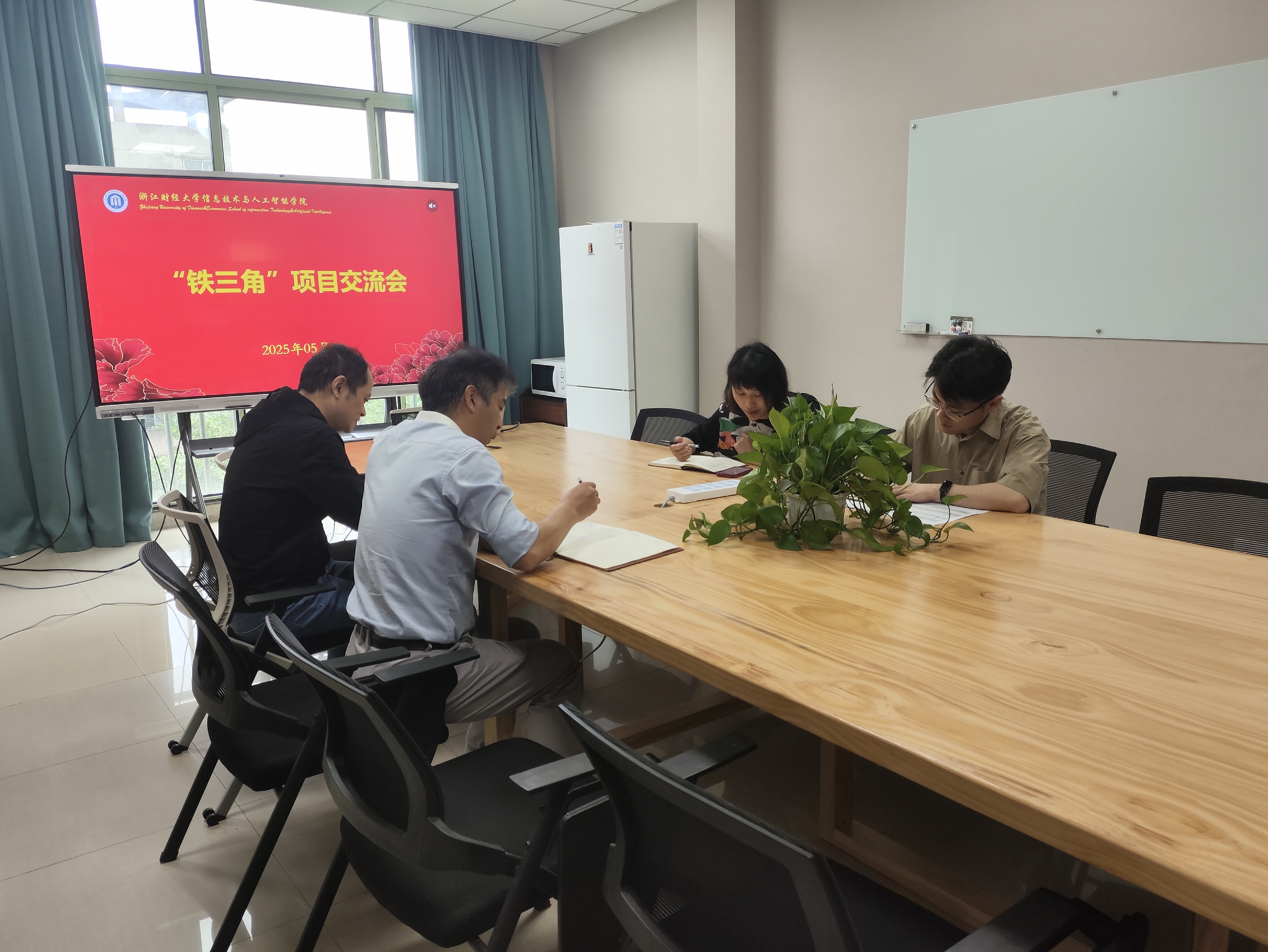 “铁三角”项目交流会于9号楼506会议室顺利召开。学院党委副书记吴轶韵,学院院长助理兼计算机系系主任陈明晶,班主任李一啸、姜罗罗,学办主任洪宝华参加此次交流会。