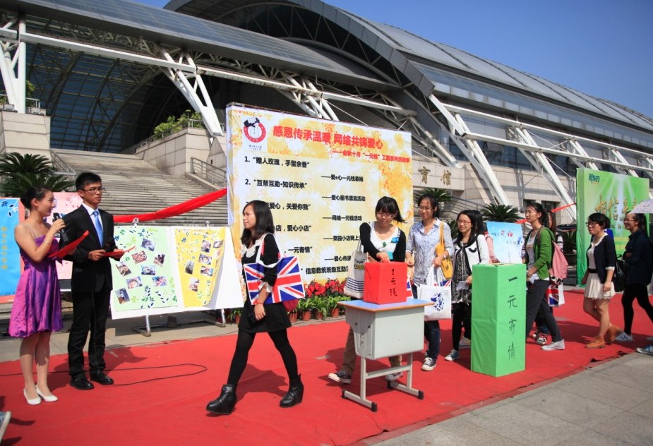 和数学与统计学院共同承办的“金秋一元钱工程”系列活动在体育馆门口隆重举行,校党委副书记王宇航教授,信息学院党总支书记、副院长王衍教授,党总支副书记高燕老师,党委宣传部、学生处、校团委等部门领导与H次元