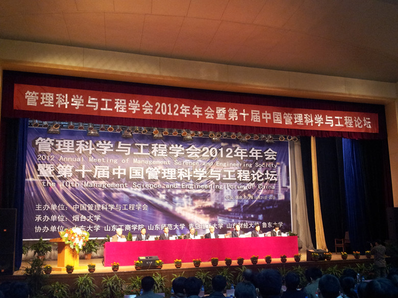 管理科学与工程学会2012年年会暨第十届中国管理科学与工程论坛于2012年10月21-22日在烟台大学举行。中国工程院院士、中国管理科学与工程学会理事长、我校名誉校长李京文,中国工程院院士、国家自然科学基金委管理科学部主任郭重庆以及国内150所高校、科研院所的专家、学者、博士生、硕士生等500余人参加。H次元