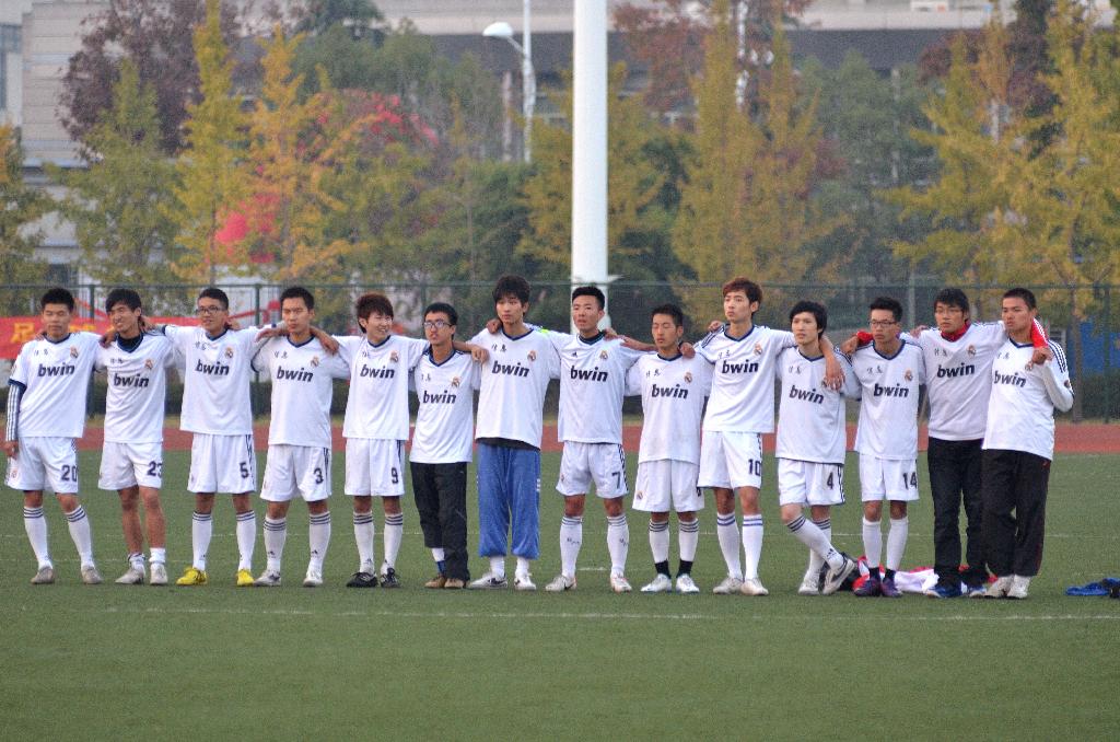 最终比赛不得不进入残酷的点球大战,信息学子关键时候齐心协力,顶住压力,表现出了优秀的团队合作和良好的心理素质,最终以4:2的比分险胜!全场一片沸腾,所有队员、观众汗水、泪水尽情挥洒出来,高喊“信息万岁”!