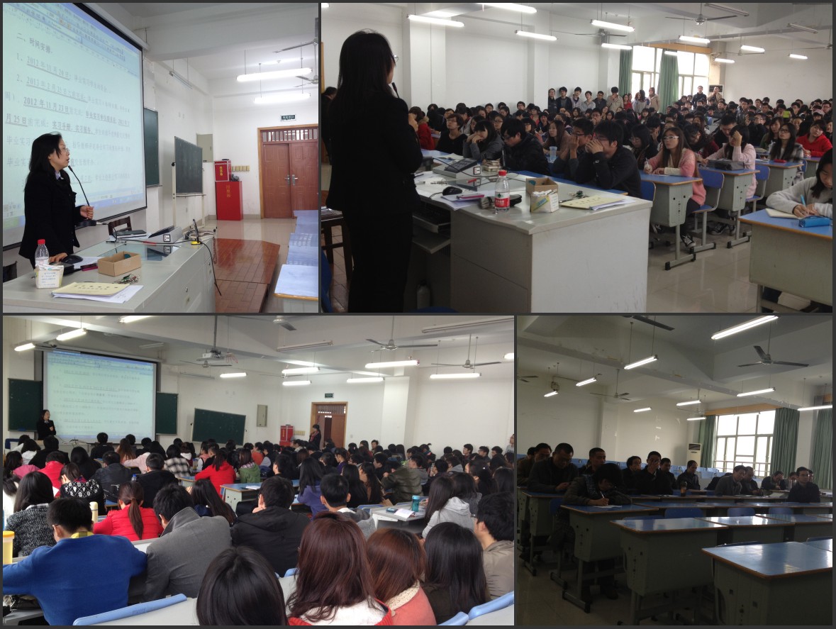 下午两点半,2013届毕业生毕业实习、毕业论文(设计)学生动员会开始,马雪英副院长详细地为同学们介绍信息学院2013届本科生毕业实习、毕业论文(设计)工作安排,并就毕业实习周记、实习报告、文献综述、外文翻译、开题报告、毕业论文等方面的写作内容、写作要求以及注意事项作了详尽的说明。