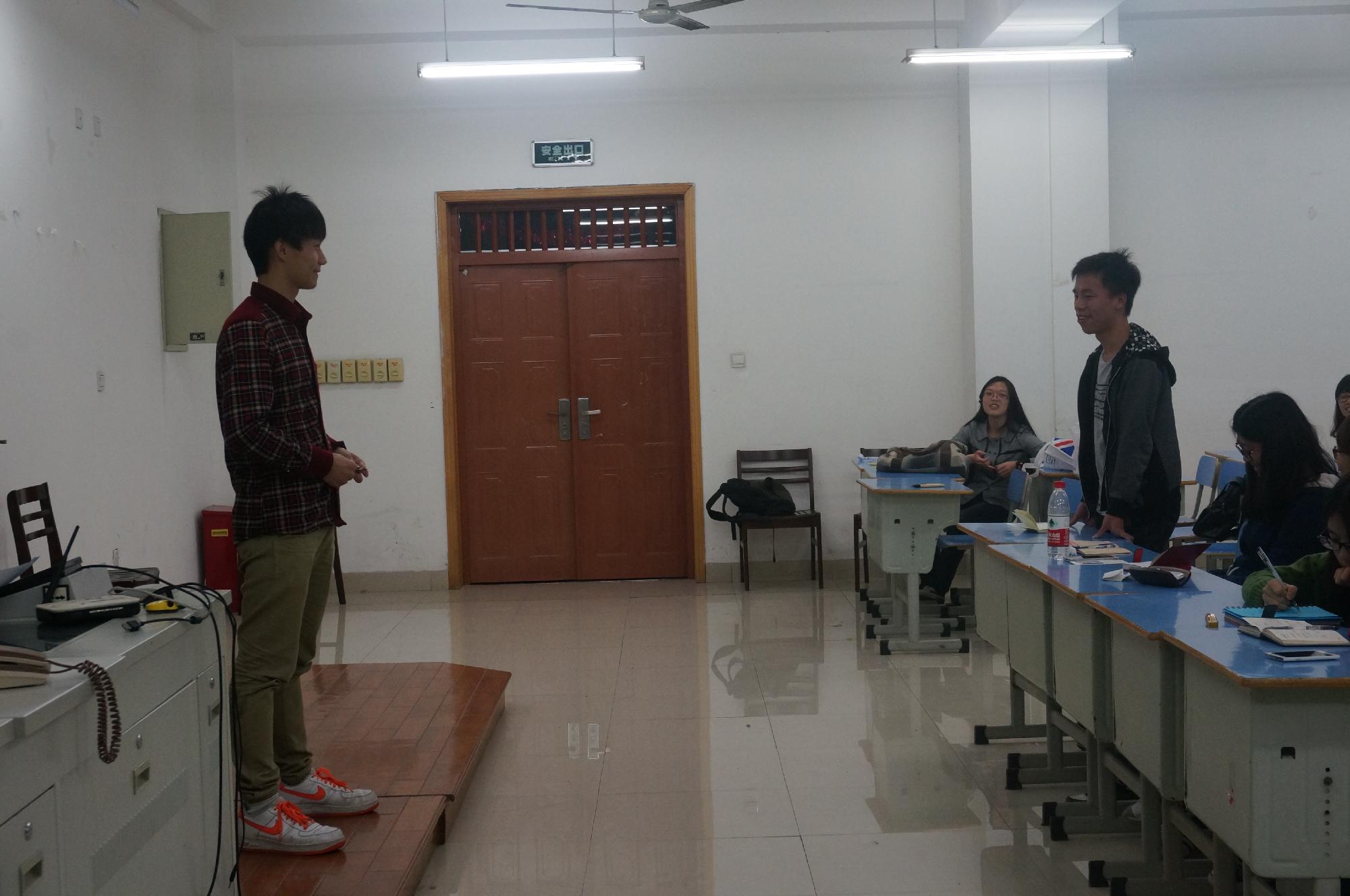 最后是提问环节。各个部门的代表陈述出自己的缺点和对学长提出问题。各个部门的陈述和提问都十分精彩,比如办公室的邹洁昊侃侃而谈,完整地向学长陈述了自己的疑问,体育部的修宇航很清楚地了解了自己的优缺点并且明确了自己只想当副部的愿望等等,学术部,H次元,外联部、自律部、广宣部等等学生会部门代表都认真地提出了自己的问题,学长也一一地给出了自己的意见和看法。