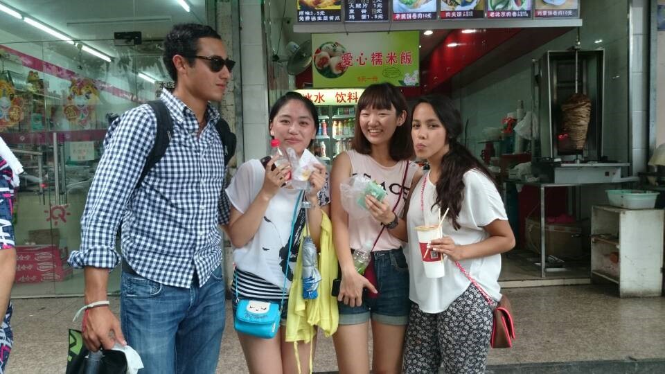 同是同龄人,大家很快就相互认识了,面对我们蹩脚的英语他们不但没有嫌弃,反而一直在鼓励我们开口说,还说我们的English is very good,晚上分别时,他们向我们表示了感谢,感谢我们放弃了自己休息的时间,在大热天的陪他们游玩。希望以后能有更多的机会能够接触不同的文化,感受不一样的风采。