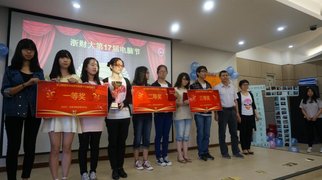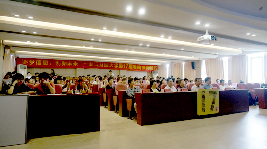 第十七届电脑节闭幕式在信息学院楼9302室隆重举行,校党委副书记钟晓敏,校团委副书记张淼以及信息学院领导张文宇、王衍、马雪英、张帅等出席闭幕式。闭幕式分为演出、颁奖、以及采访三个环节。由信息学子精心设计制作的VCR拉开了闭幕式的序幕,回顾了本届电脑节期间系列特色活动。