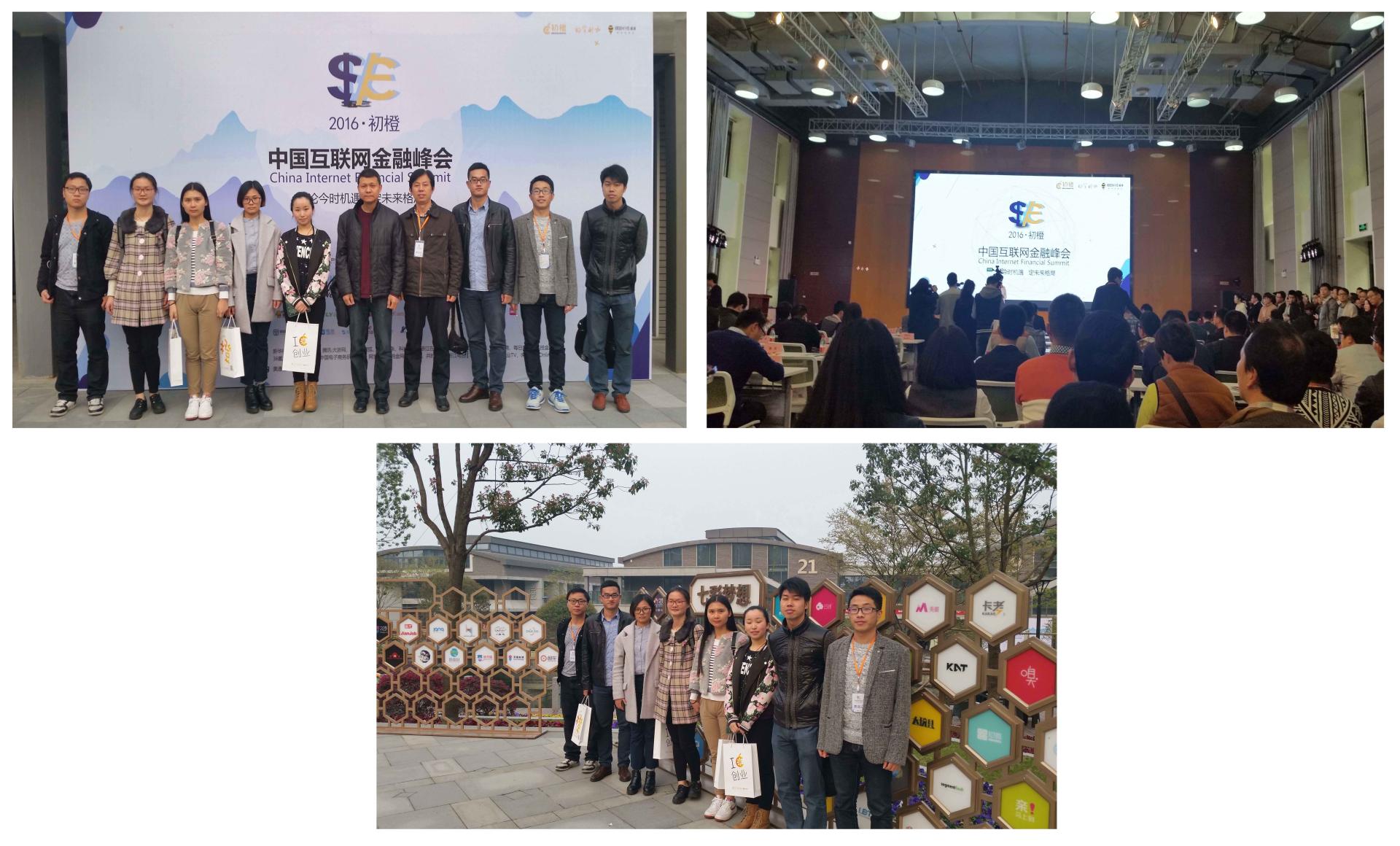 10余名研究生和本科生参加了本次峰会。本次中国互联网金融峰会吸引了众多互联网金融企业创始人、CEO以及专家、学者共计500多人参加,会场座无虚席,热闹非凡。众安保险CTO姜兴、WeX微汇金融联合创始人何俊、爱学贷CEO钱志龙等嘉宾上台围绕着互联网金融创新发展主题做了精彩演讲。在最后的圆桌会议阶段,51信用卡CEO孙海涛、财富创始人马雪峰、同盾科技CEO蒋韬、启明创投执行董事周凌霏、UCloudCoo华琨、著名财经评论家陈宇等多位嘉宾围绕着基于大数据的风险控制、如何应对政府监管、互联网金融的机遇和调整等热门话题进行了热烈的讨论和深入的交流,会场氛围达到高潮。