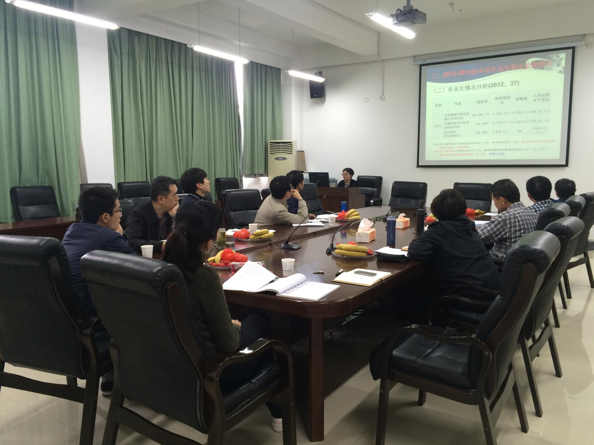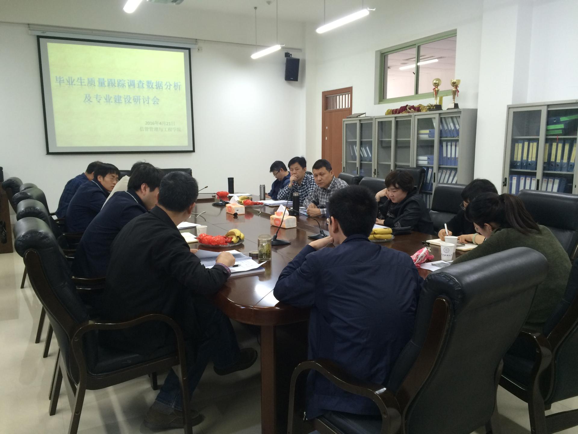 2016年4月21日下午,信工学院在9-404召开了毕业生职业发展状况及人才培养质量调查数据分析及专业建设研讨会。会议由信工学院院长张文宇教授主持,学院教学委员会成员、专业负责人、系主任以及部分专业骨干教师参加此次会议。