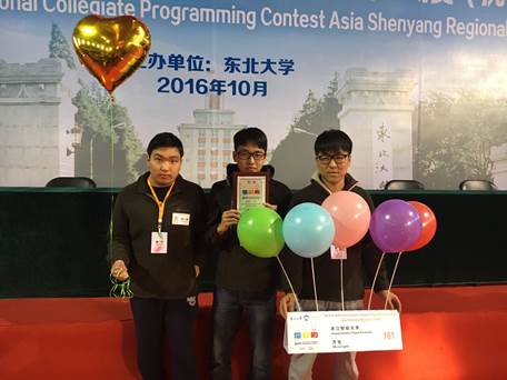 14计算机项闰冶、14计算机刘驰翔和14信息计算史海虹同学代表学校参加了国际大学生程序设计竞赛亚洲区域赛大连站的比赛;14软件陈永康、14软件章艺钟和15计算机刘小菊以及15信息张海栋、15计算机王子恒和15软件李天阳组成的代表队参加了中国大学生程序设计竞赛杭州站的比赛。