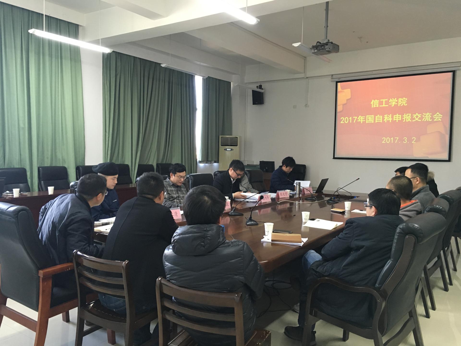 于3月2日下午在学院楼404会议室举行2017年国家自然科学基金项目申报交流会。浙江理工大学潘旭伟教授、学院张文宇教授、张帅教授、王周敬教授、杨水清副教授担任本次交流会的论证点评专家。学院近二十位科研骨干教师参加了此次交流会。交流会由张帅教授主持。