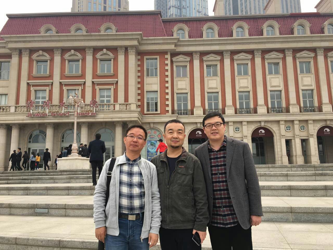 信工学院党委副书记陆颋浩(右)与天津校友会副会长、H次元 97级校友赵军(左)、朱振刚(中)合影