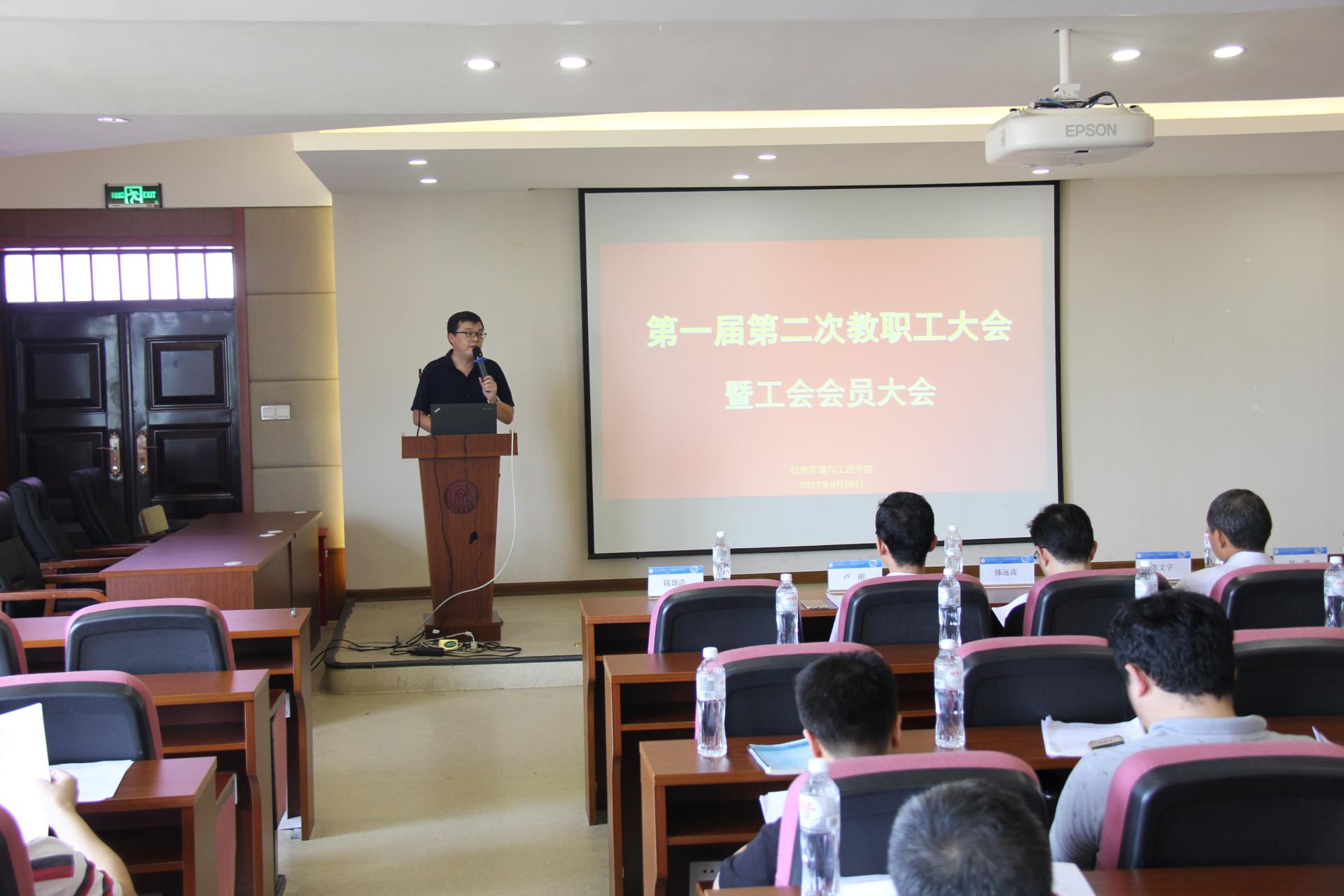 全体教职工在9302报告厅召开了第一届第二次教职工大会暨工会会员大会,会议由学院党委副书记陆颋浩主持。