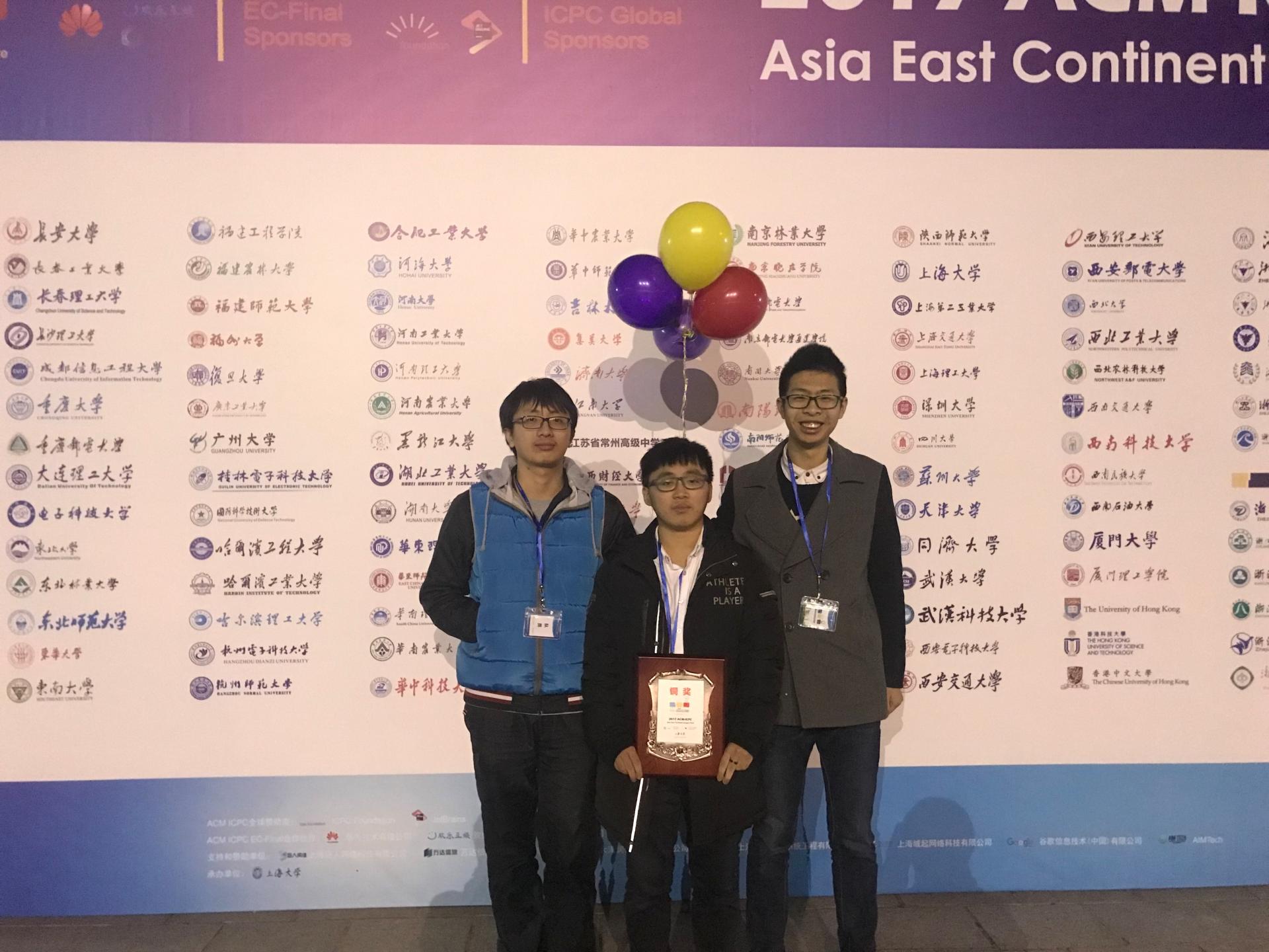 12月16日-17日,第42届ACM-ICPC东亚洲大陆总决赛(East Continent League Final,简称EC-Final)在上海大学圆满举行。本次竞赛共有来自清华大学、北京大学、香港中文大学、朝鲜理科大学等在内的东亚洲142所高校、329支队伍参加。经过现场激烈角逐,在西安赛区获得金牌的“月光”队和在南宁赛区获得银牌的“新月光”队成功获得参赛资格,两支队伍发挥出色,分别获得银奖和铜奖的优异成绩。