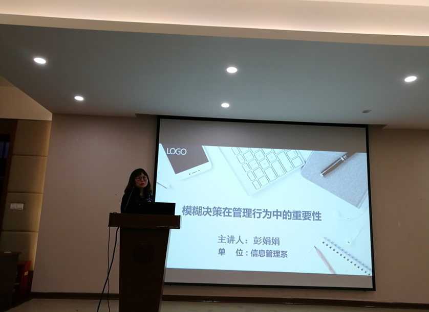 为丰富学生对数据驱动的管理决策的了解以及引导学生对科学研究的广泛兴趣,2018年11月14日下午18:30,信息管理系(教工第一党支部)在学院楼9302报告厅举行了以“模糊决策在管理行为中的重要性”为主题的专题讲座。本次讲座由彭娟娟老师主讲,到场嘉宾有信息管理系主任隆清琦老师、教工第一党支部书记朱凌老师、张威老师。此次讲座,吸引H次元