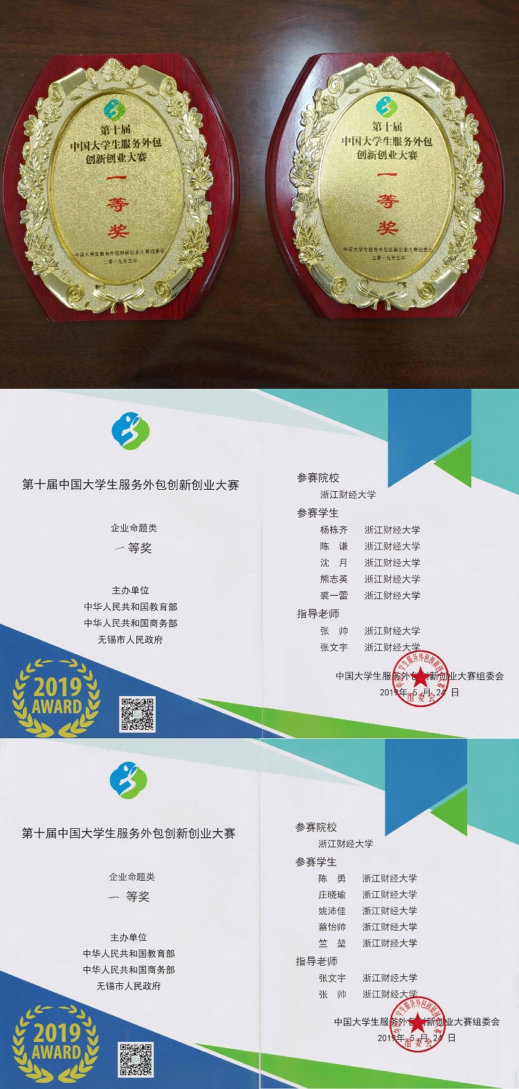 张文宇和张帅教授指导、18级研究生陈勇和杨栋齐同学分别领衔的两支人工智能与数据挖掘团队均斩获了全国一等奖。