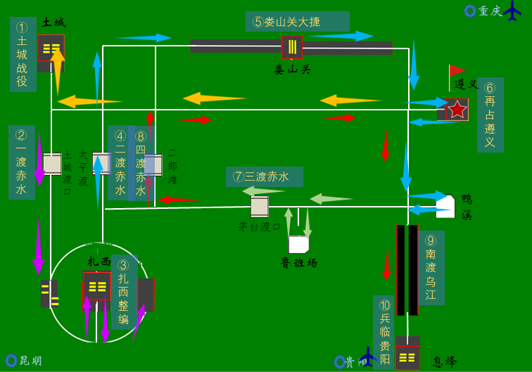 本次比赛以红军长征史上重要的篇章——“四渡赤水”为主题,要求参赛选手设计并制作机器人软硬件系统,模拟红军长征,让机器人从遵义出发,历经土城战役、一渡赤水、扎西整编、二渡赤水、娄山关大捷、再战遵义、三渡赤水、四渡赤水、南渡乌江、兵临贵阳,真实还原“四渡赤水出奇兵”的精彩历史。